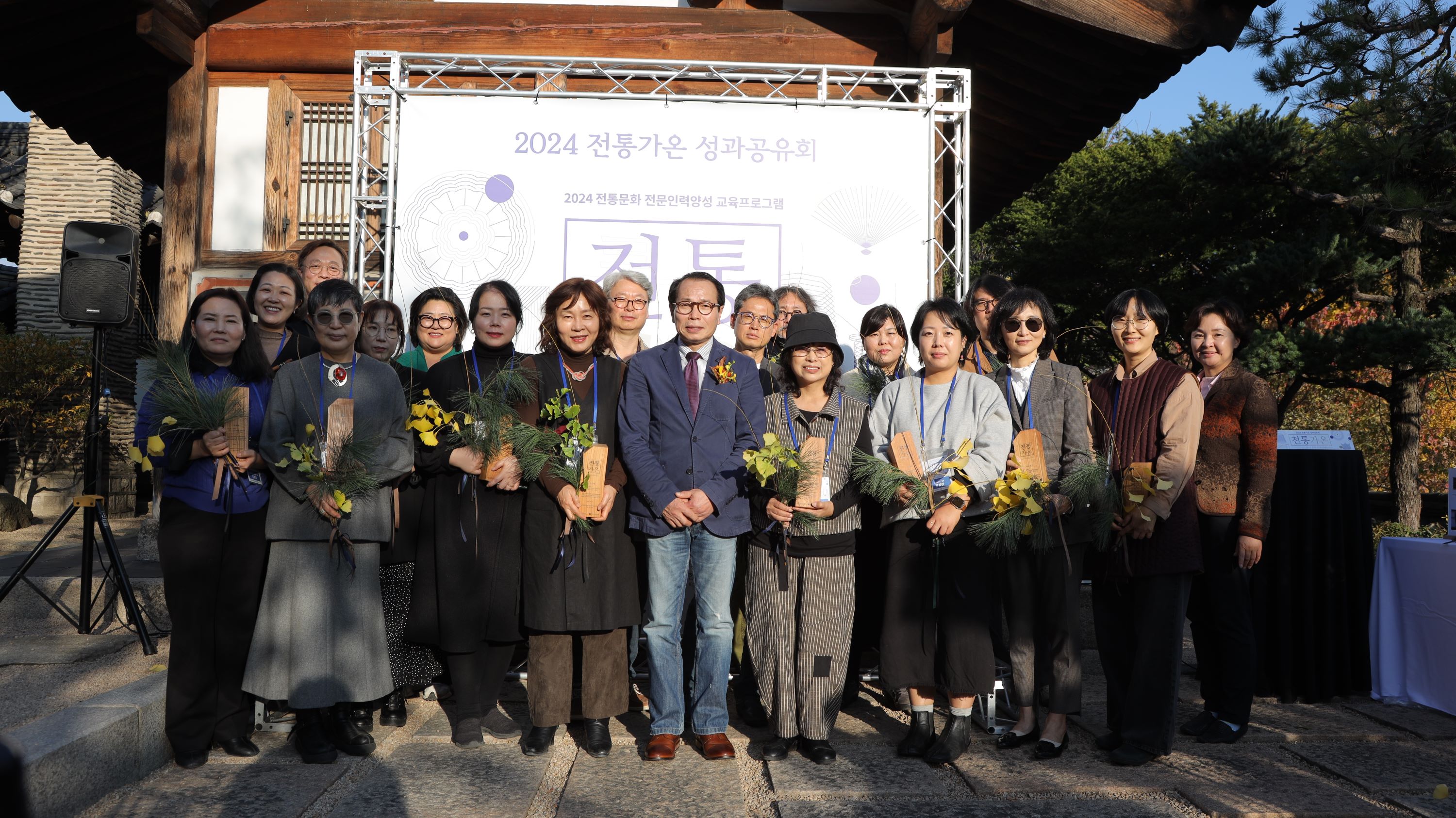 이날 성과공유회에는 전통가온 3기 수료생과 1,2기 수료생 및 관계자 50여명이 참석했다. 참석자들 간의 교류를 위한 차담회로 시작해 〈2024 전통가온〉 추진 성과보고, 수료패 증정 및 교육소감 발표 등의 순으로 진행됐다.