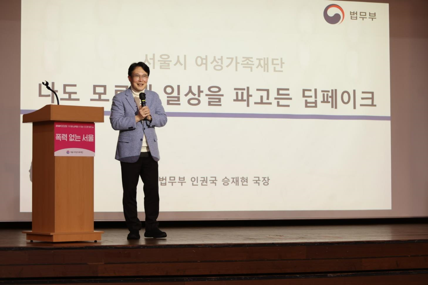 ‘나도 모르게 일상을 파고든 딥페이크’를 주제로 진행된 승재현 법무부 인권국장의 강연과 디지털 성범죄 예방 창작 뮤지컬 ‘디지털 M컷’ 공연은 참여자들의 큰 호응을 얻었다.