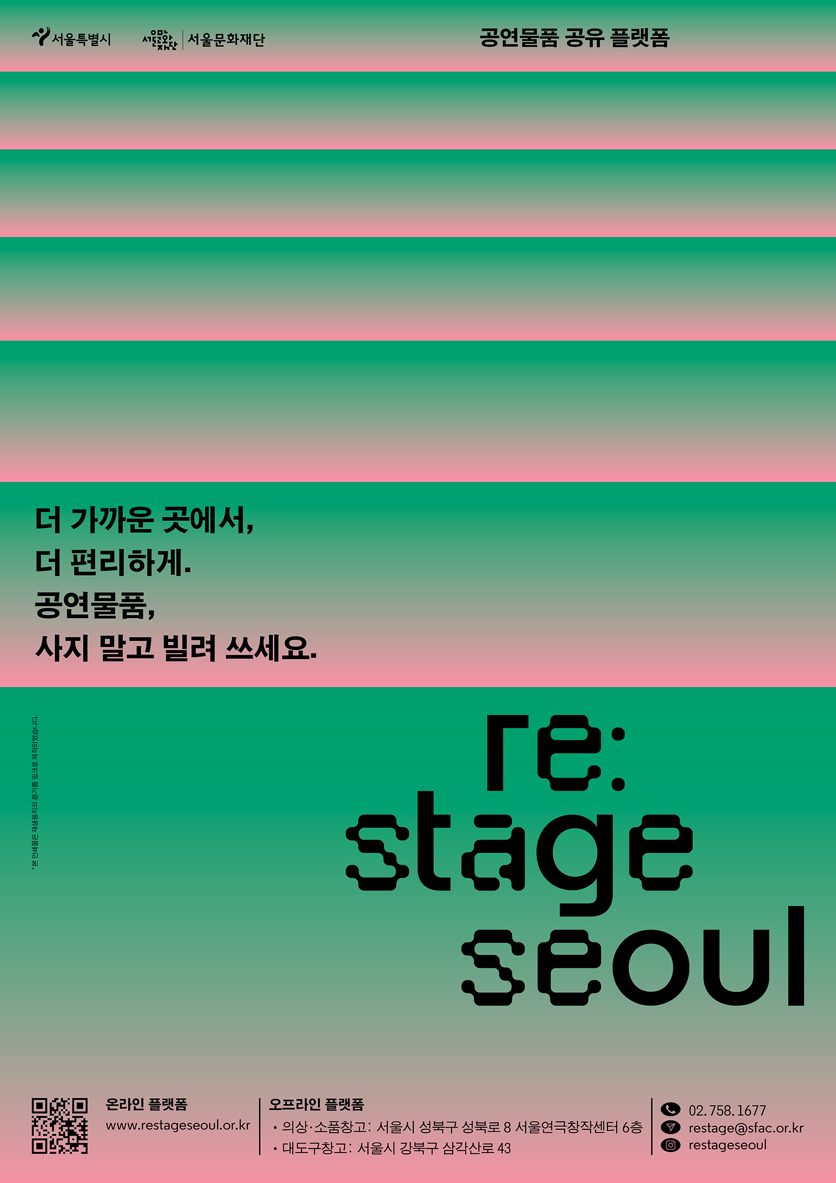 [플레이뉴스 문성식기자] 서울문화재단(대표이사 이창기)이 운영하는 공연 물품 공유 플랫폼 '리스테이지 서울(Re:Stage Seoul)'이 오늘(2일)부터 서비스를 전격 확대한다.
