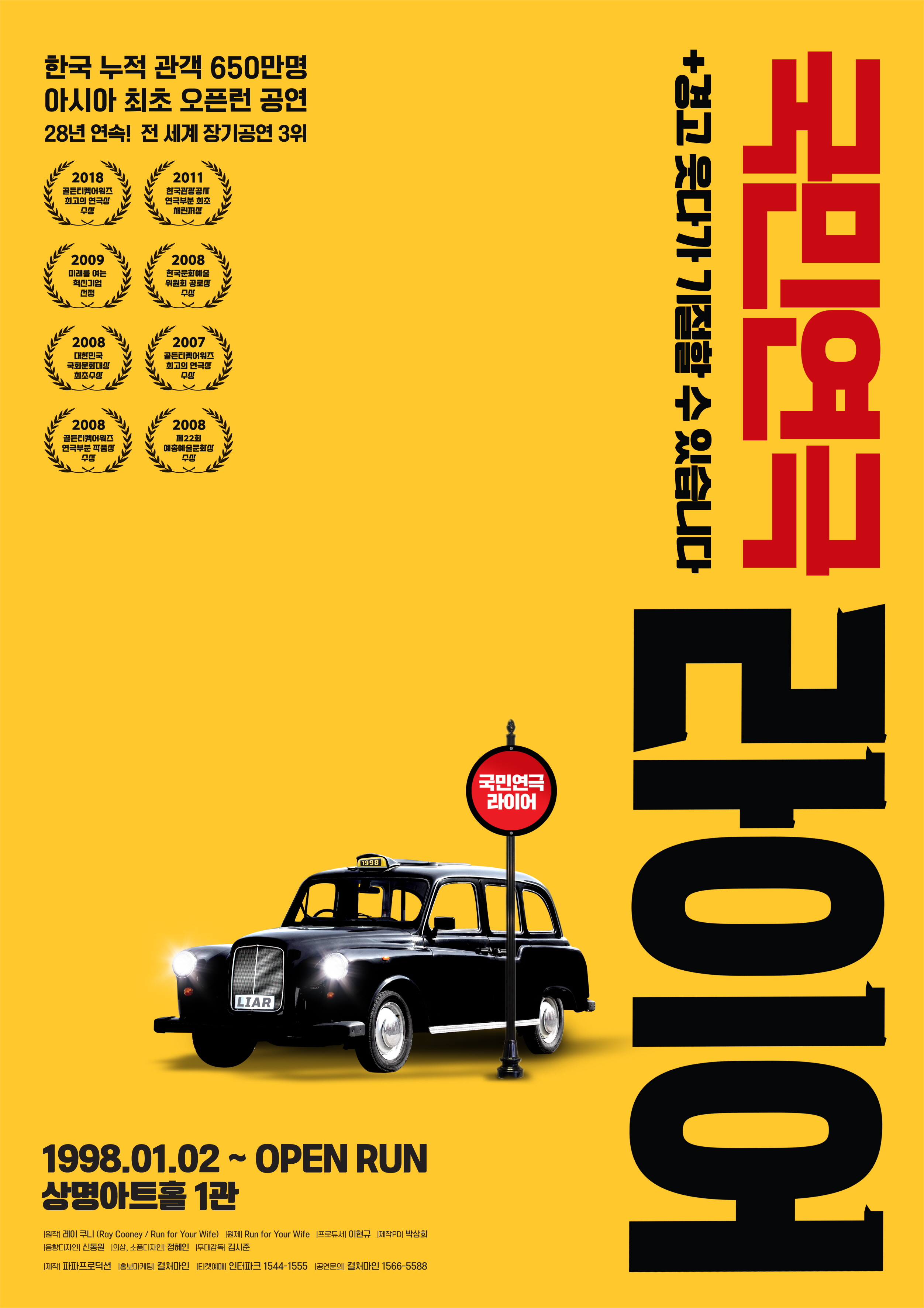 이렇듯 국민연극 〈라이어〉의 거짓말 같은 성공 신화를 엿보도록 하자.연극 〈라이어〉의 원제는 ‘Run for Your Wife’로 영국의 인기 극작가 겸 연출가 레이 쿠니(Ray Cooney)의 대표작이다.