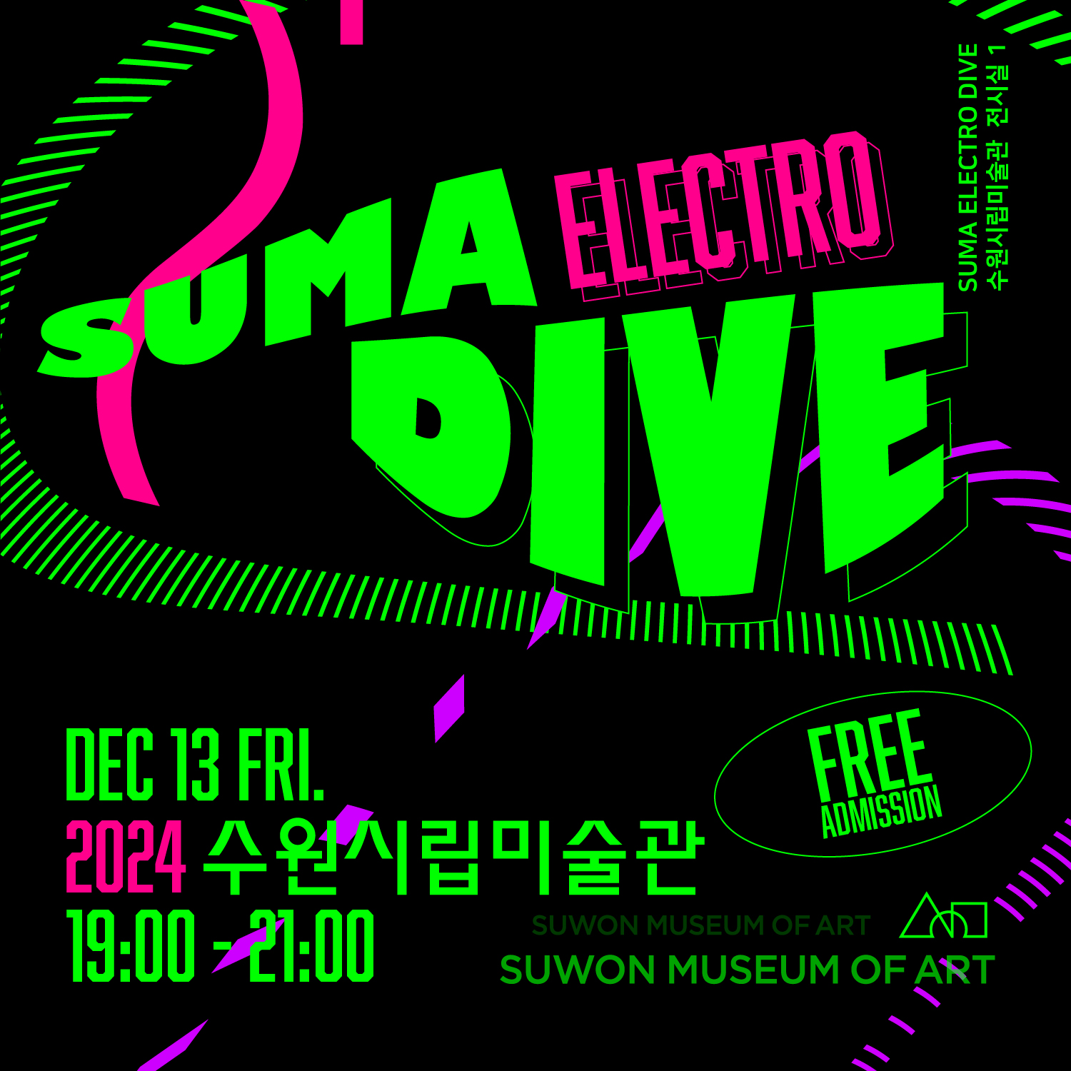 [플레이뉴스 문성식기자] 경기도 수원시 수원시립미술관(관장 홍건표)은 현대미술의 다양성을 알리고 미술관의 문화적 접근성을 높이기 위한 장르확장형 공연기반 'SUMA 일렉트로 다이브' 행사를 12월 13일(금)에 전시실 1에서 개최한다.