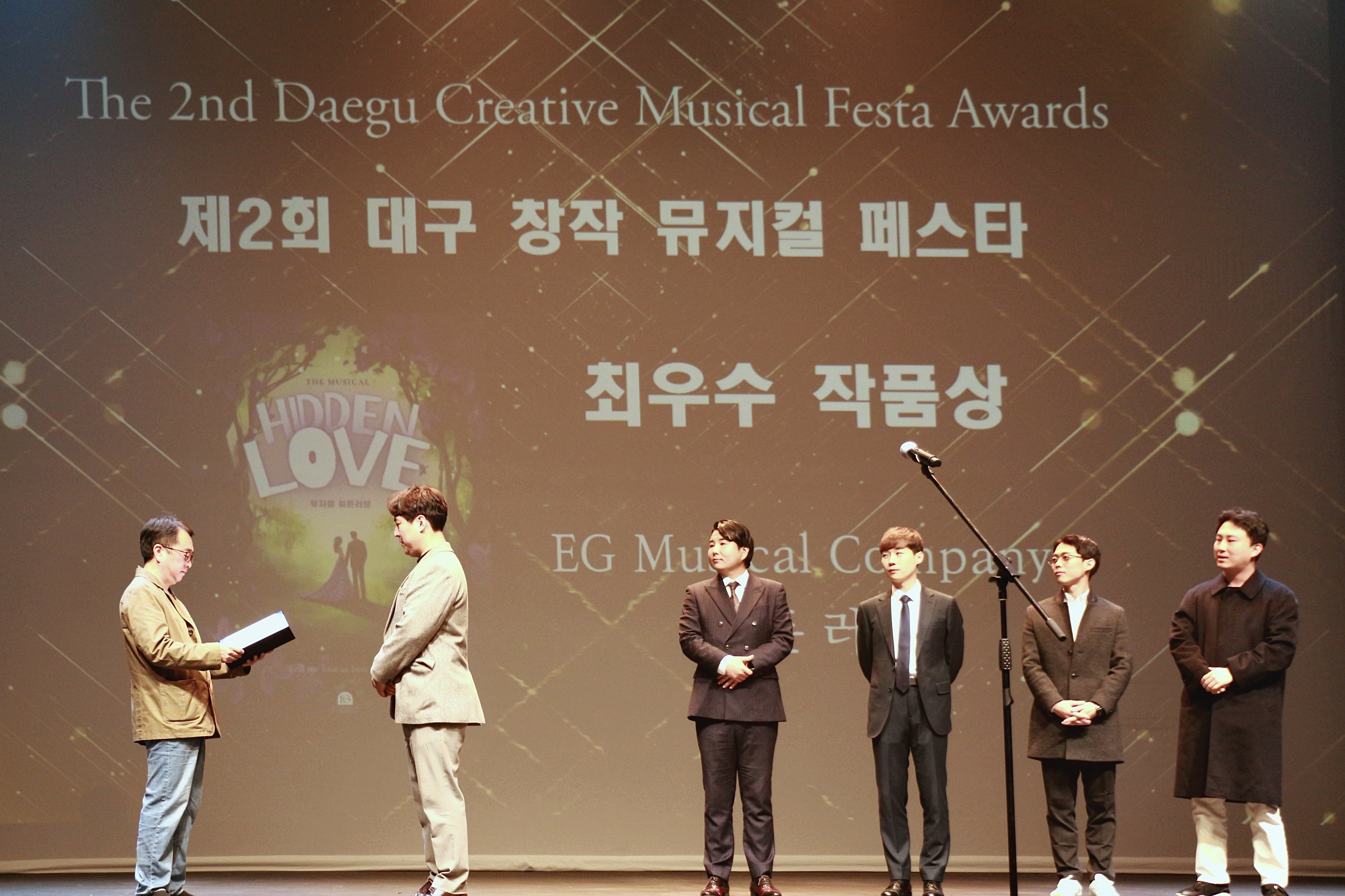 [플레이뉴스 문성식기자] 이지뮤지컬컴퍼니가 제2회 대구창작뮤지컬페스타에서 뮤지컬 히든러브로 최우수작품상, 특별상, 작곡상, 여우주연상, 인기상을 수상하며 5관왕의 쾌거를 달성했다.