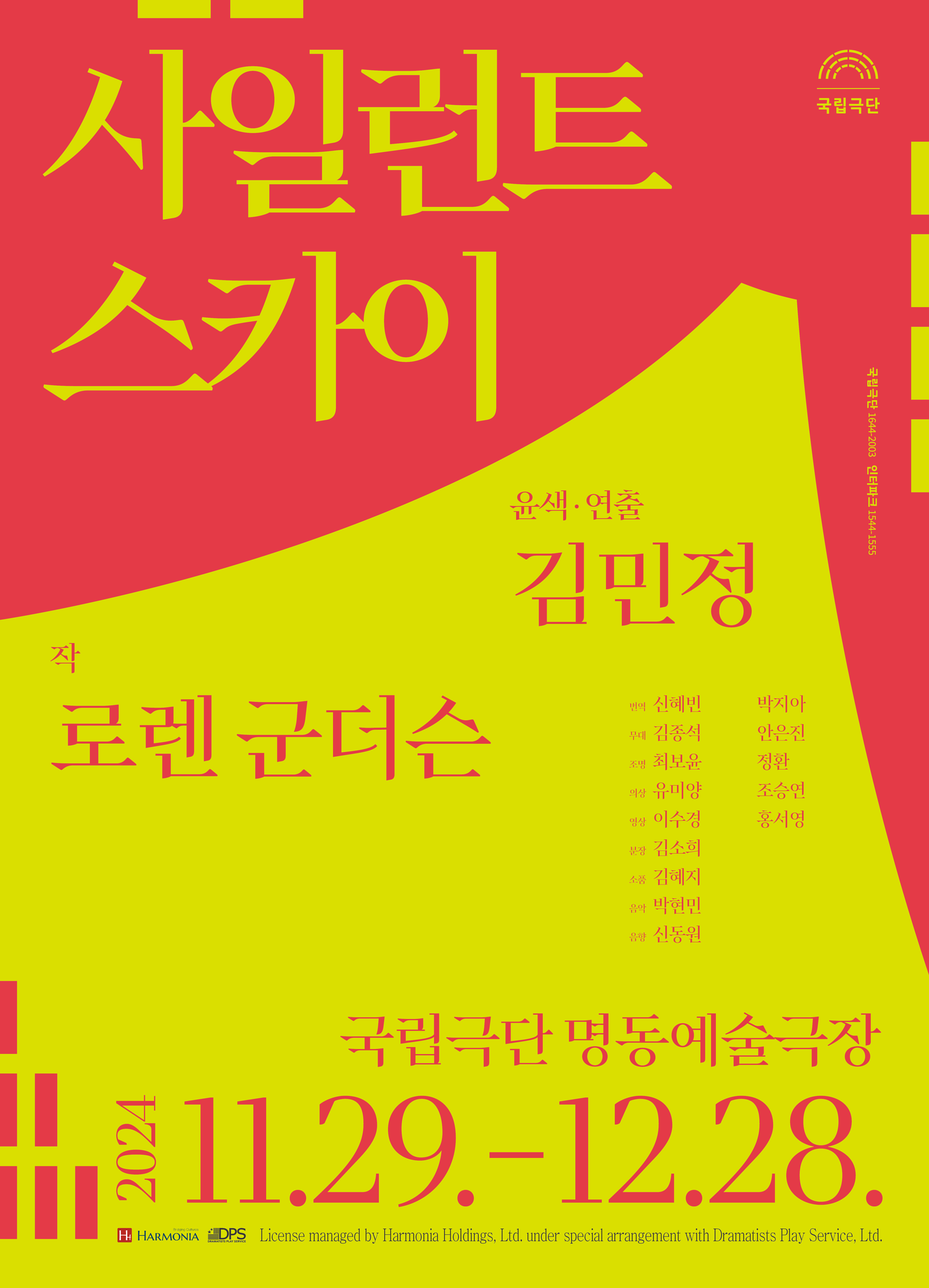 | 작/연출 | 로렌 군더슨 작 / 김민정 윤색,연출 | 문의·예매 | 1644-2003 | 국립극단, 인터파크 |