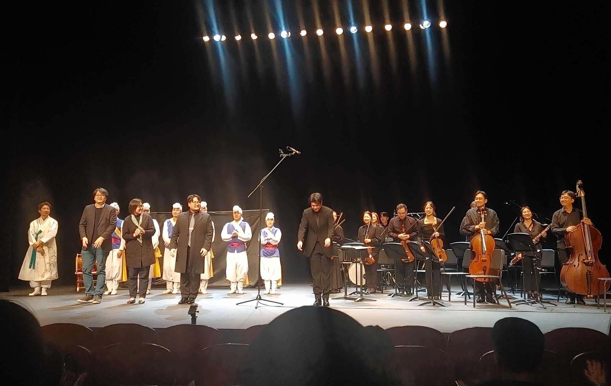한국 전통 타악기의 박력과 장단에 반주 앙상블은 재즈톤도 느껴졌고 즉흥의 타악기 카덴짜는 카타르시스를 주는 클라이막스를 구성하여, 동서양의 만남이 흥겨운 무대가 되었다.