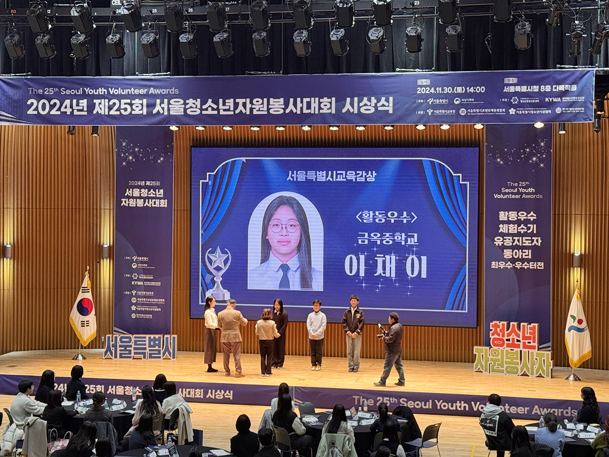 지난 11월 30일, 서울시청 다목적홀에서 개최된 ‘제25회 서울청소년자원봉사대회’에서 서울시립청소년음악센터 봉사 자치단 ‘아트 포켓 봉사단’의 부단장 이채이 청소년이 활동우수 부문 ‘서울특별시교육감상’을 수상했다.