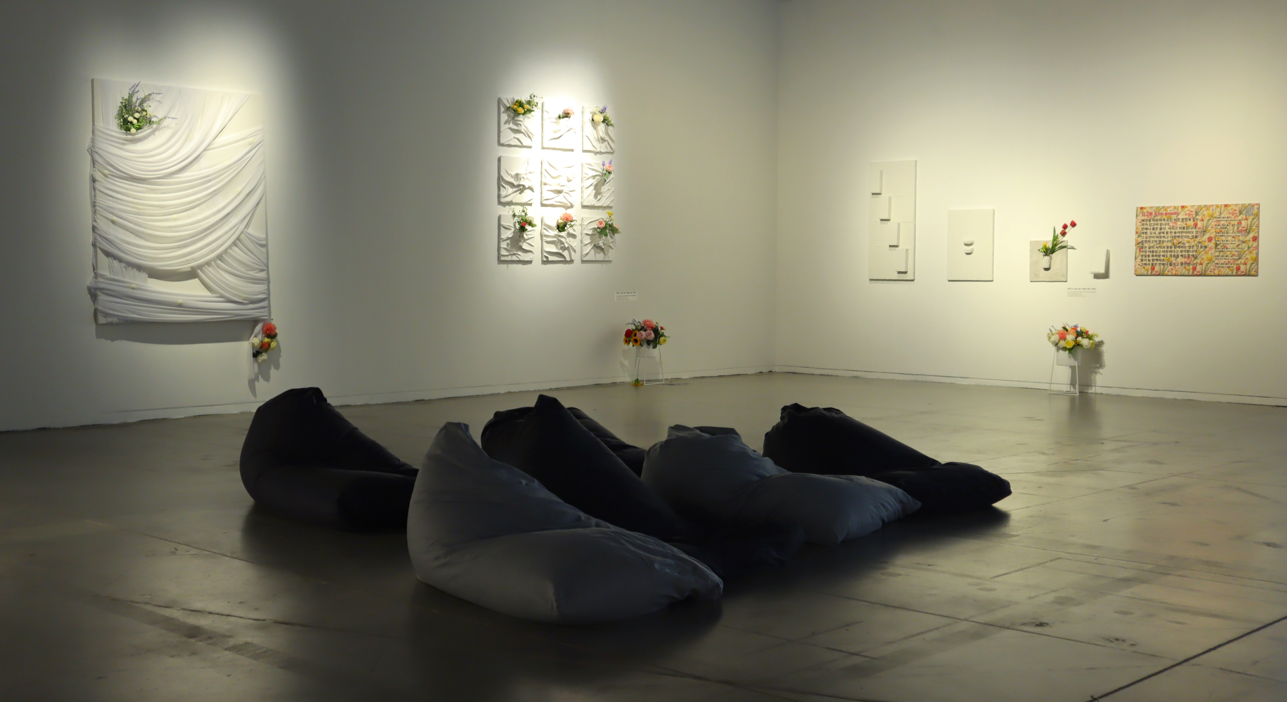 고미희 작가는 인생, 아름다움, 소중한 순간들에 빠지지 않는‘꽃’이라는 소재로 관객과 소통할 수 있는 회화작품을 전시한다. 김예지는 자동차가 주행하며 차선을 넘나들 때 서로 눈치 보는 상황을 신호등에 빗대어 영상 작품으로 제작하였다.