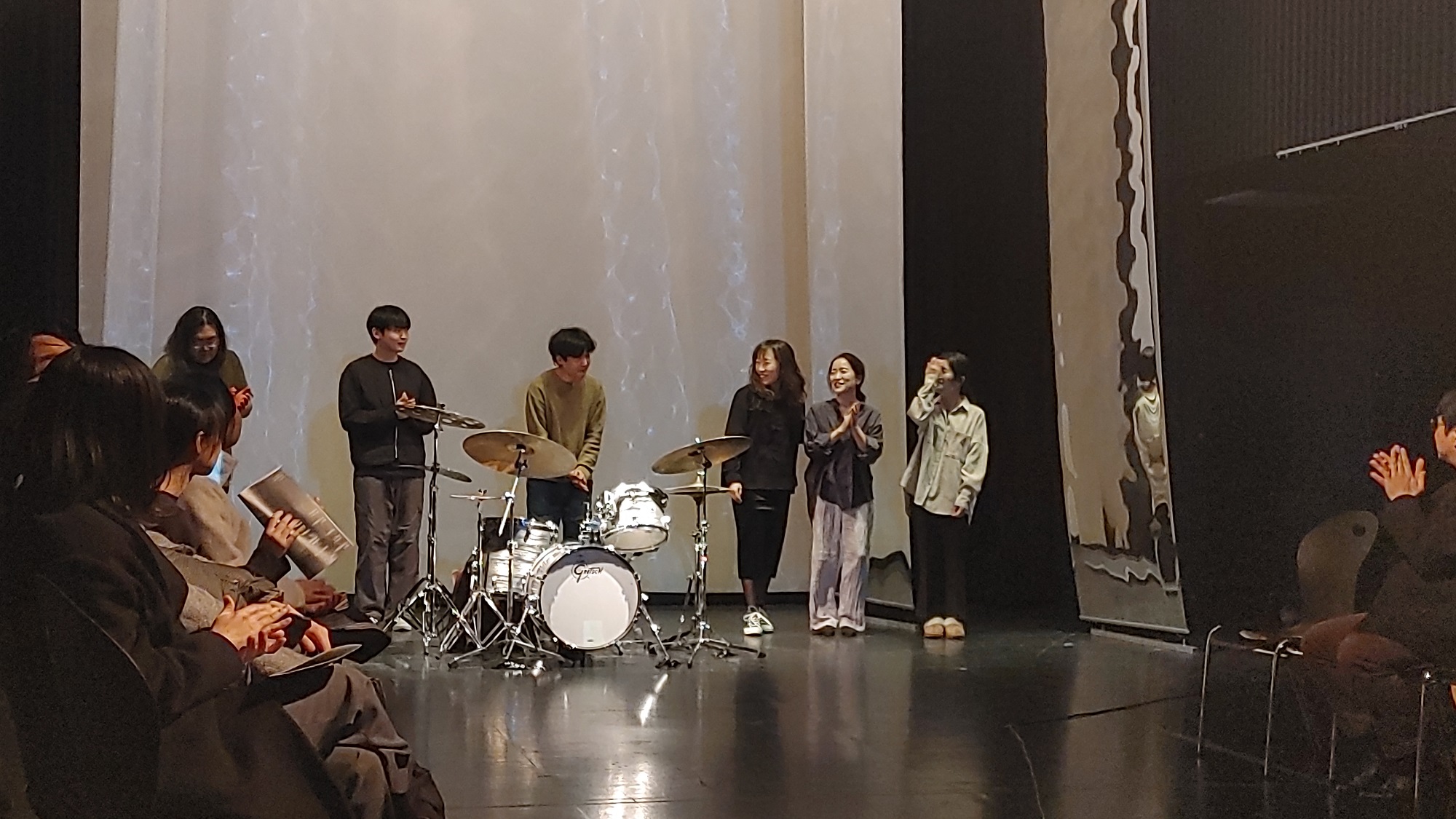 소리를 듣는데 내가 무얼 해야 한다니, 또 여러 명이 걸어다니는 통에 약간 불안하기도 하지만 ‘왜 이러지? 이게 뭐지?' 하는 호기심의 첫 순서는 공연 전체에 문제제기의 창구역할을 한다.