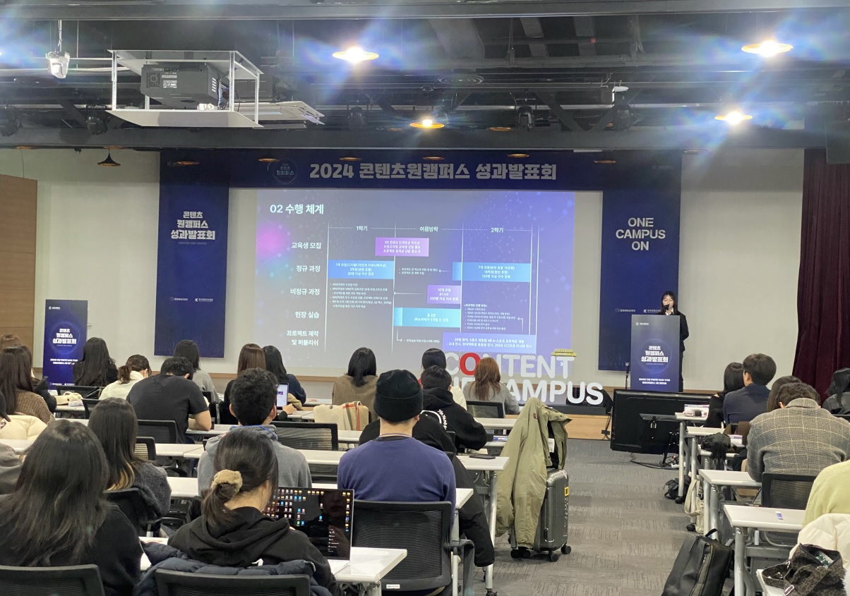 [플레이뉴스 문성식기자] 문화체육관광부(장관 유인촌)와 한국콘텐츠진흥원(원장직무대행 유현석)이 ‘2024년 콘텐츠원캠퍼스 사업 성과발표회’를 지난 19일 홍릉 콘텐츠인재캠퍼스에서 성공적으로 마무리했다.