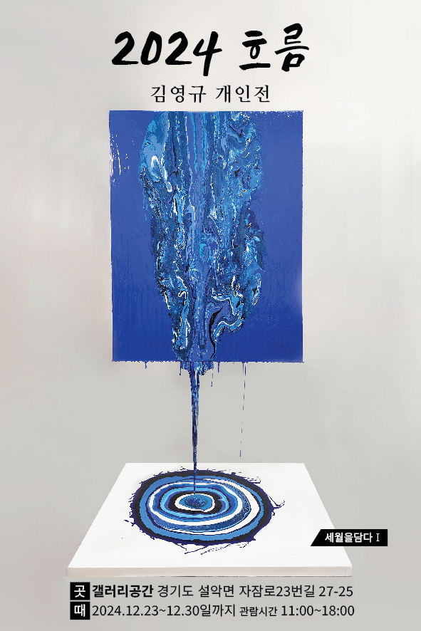 명확한 결론 보다 감상자 해석의 차이로 더욱 재미있게 의미가 생성되도록 3차원적인 미술품을 제작하는 김영규 작가는 2024년 12월 23일(월) ~ 12월 30일(월)까지 경기도 가평군 소재의 갤러리공간(대표 김은경)에서 "2024 흐름" 타이틀로 초대 개인전을 실시 중에 있다.