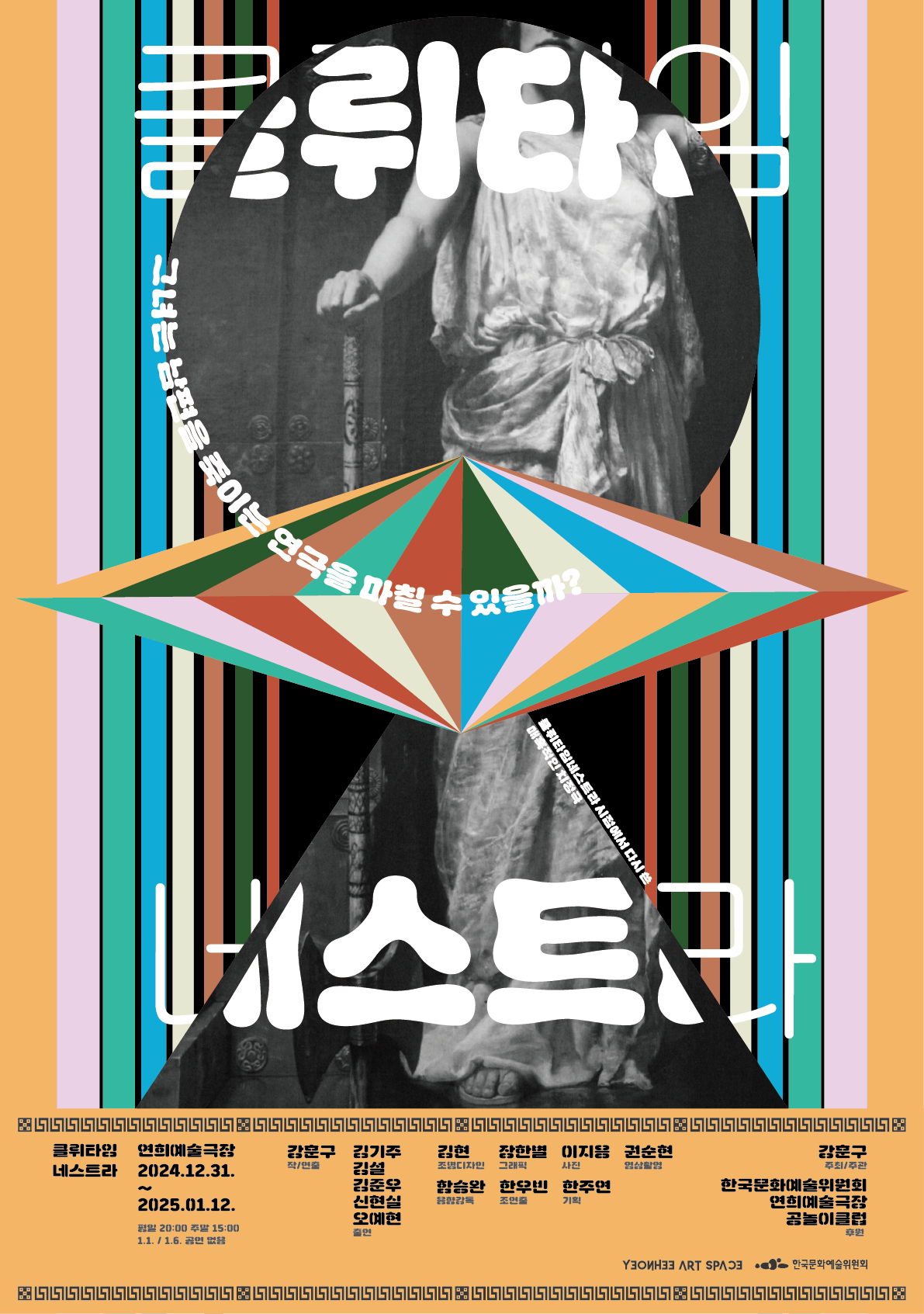 [플레이뉴스 문성식기자] 2021년 '마더퍼커 오이디푸스'에서, ‘오이디푸스’를 한국의 대통령으로 삼아 복수가 반복되는 한국 정치사를 조명했던 강훈구 연출가가 이번 '클뤼타임네스트라'의 작가 겸 연출을 맡았다.