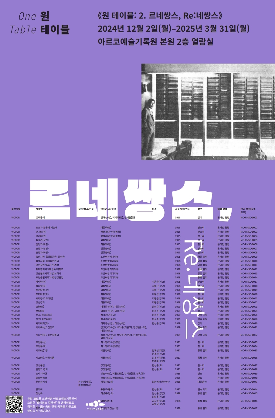 아르코예술기록원 소장기록물 기획코너 《원 테이블: 르네쌍스, Re:네쌍스》공개