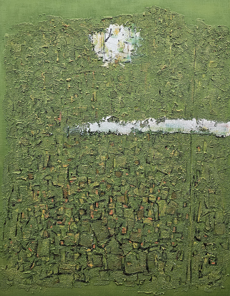 두꺼운 질감은 추상의 회화적 표현을 철학적인 가치로 더욱 높이는 역할을 하여 작가가 추구하는 욕심내지 않고 순리를 따르려는 마음을 나타내고 있다.