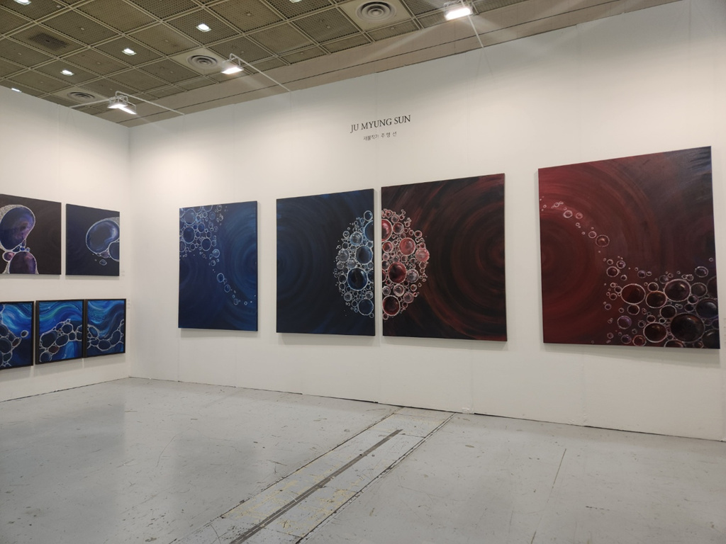 '월드아트엑스포 2025'에서 암염화(巖鹽畵)를 알린 주명선 작가는 "20여 년간 프랑스에서 암염작업을 연구하고 대중에게 자신감 있게 작품을 선보이는 날을 꿈꾸며 많은 시간을 창작 작업에 몰두했다.