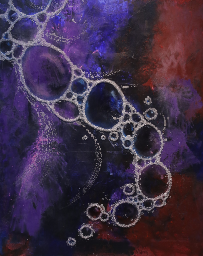 물에서 생성되는 물방울의 신성함과 암염(돌소금) 결정체에서 느껴지는 오묘한 우주의 세계가 절묘하게 구축된 캔버스는 무한 상상의 시간으로 이끌며 모든 생명체와 물질이 가지고 있는 원초적인 순수의 세계로 안내한다.