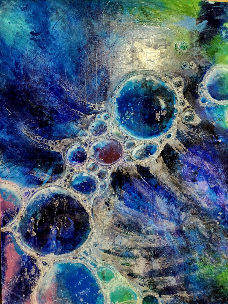 바다 위에 떠다니는 물거품의 형상은 번뜩이는 작품의 소재로 연결되었으며, 햇볕 받은 물거품 얇은 막에 구현되는 오묘한 색상들을 회화적으로 풀어냈다.