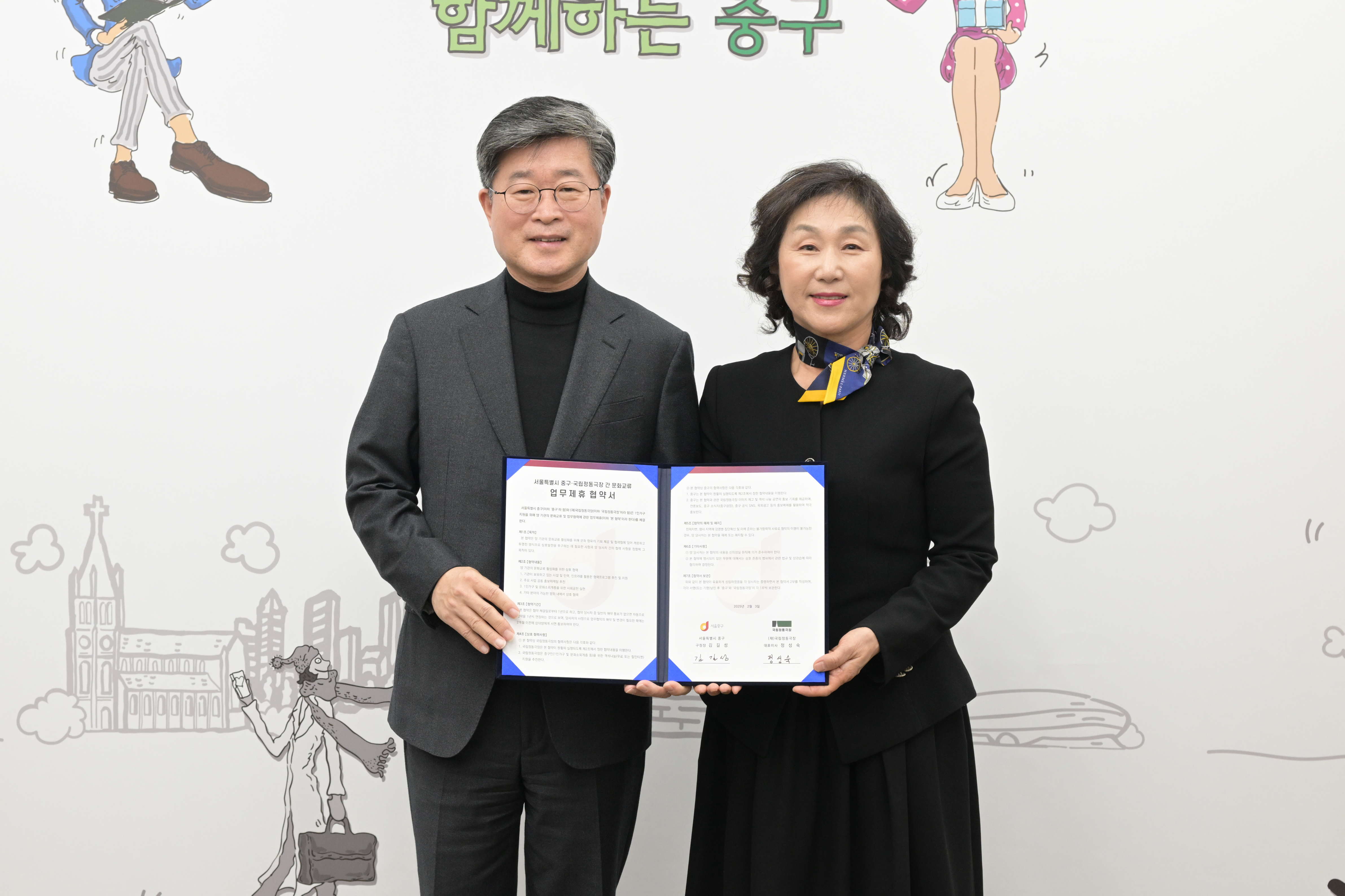 [플레이뉴스 문성식기자] 국립정동극장(대표이사 정성숙)이 지난 3일 중구청 본관에서 서울특별시 중구청(구청장 김길성)과 ‘1인 가구 문화교류 활성화’ 업무협약을 체결했다.