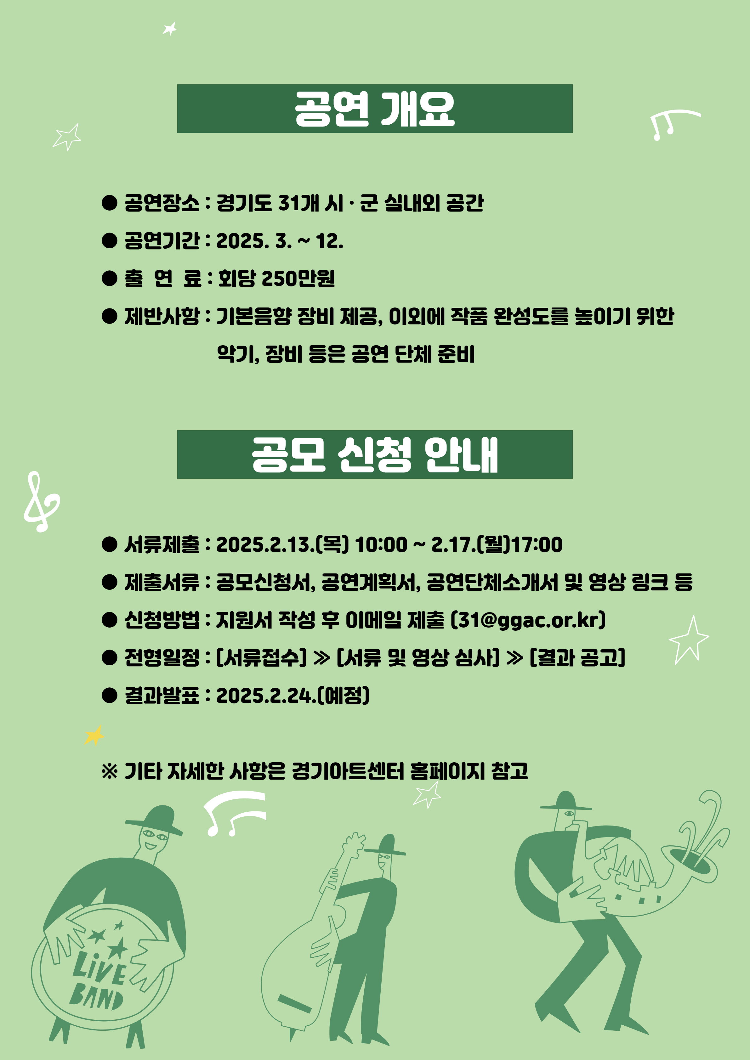 선정된 단체들은 2025년 12월까지 경기아트센터가 주관하는 다양한 공연에 참여하게 된다.
