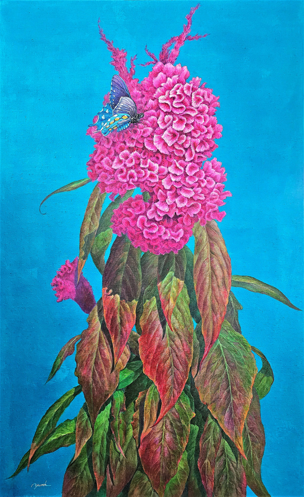 굴곡진 맨드라미의 형체는 우리들의 인생과도 닮아있다. 새싹부터 만개하는 전 과정에서 보여주는 꽃의 색 변화가 사람이 살면서 마주치는 희로애락(喜怒哀樂)의 변곡점들을 맨드라미꽃을 통해 이야기 한다.