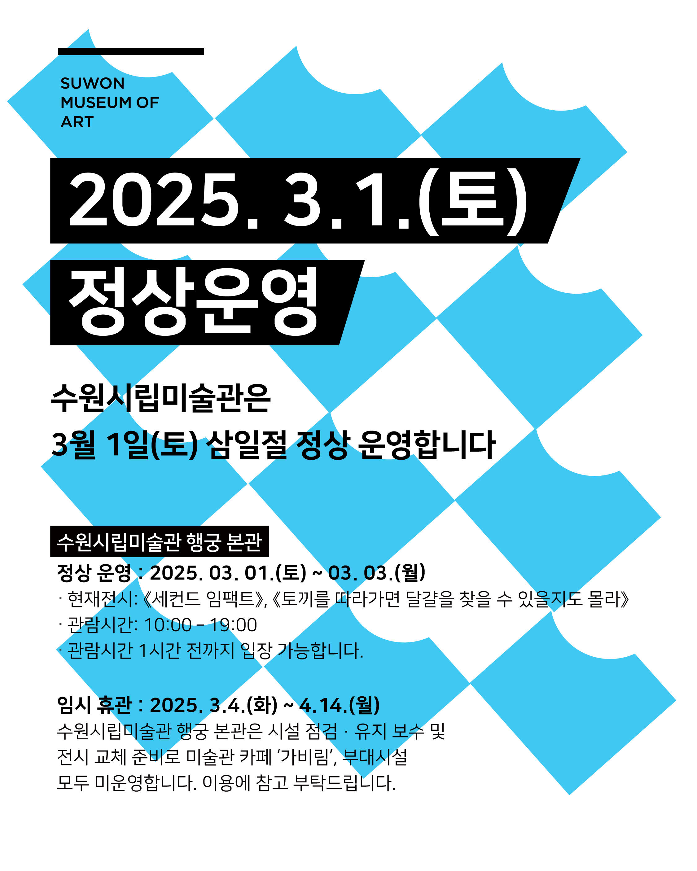 ◯ 수원시립미술관 행궁본관 삼일절 연휴(3월 1~3일) 정상개관