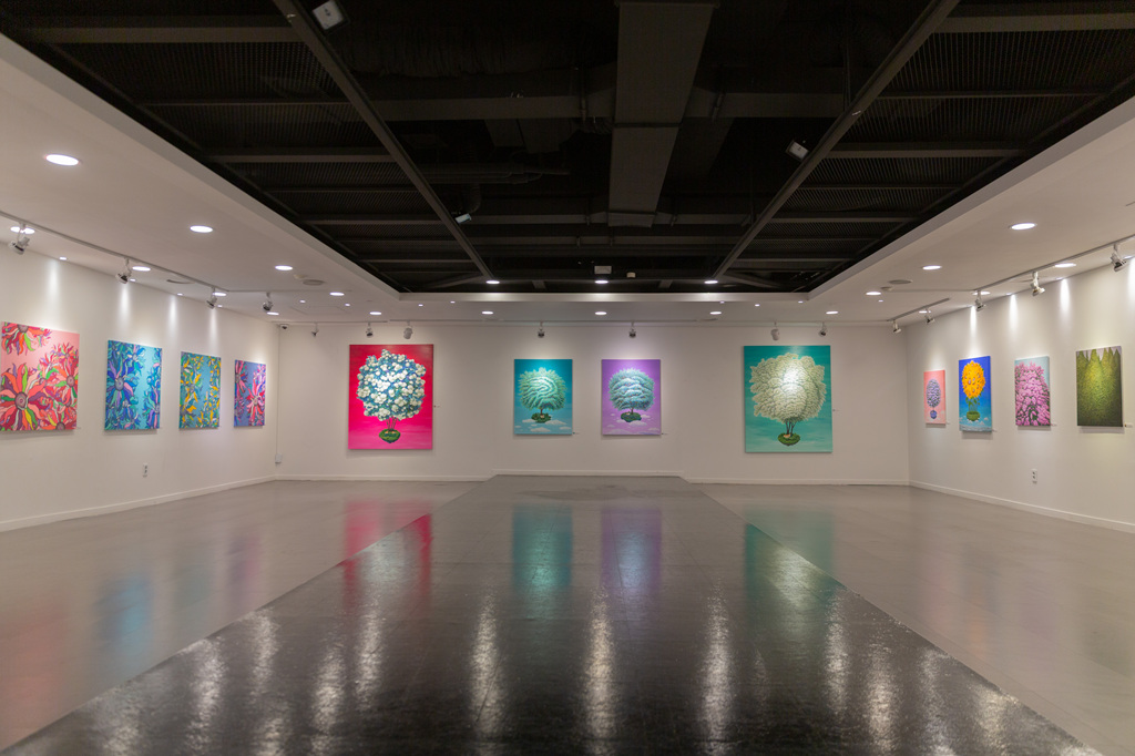 화면 중앙에 위치한 만개한 꽃과 싱그러움이 절정인 나무는 인생의 화양연화를 설명하듯 뿜어져 나오는 에너지가 넘치는 작품들로 관람객을 맞았다.