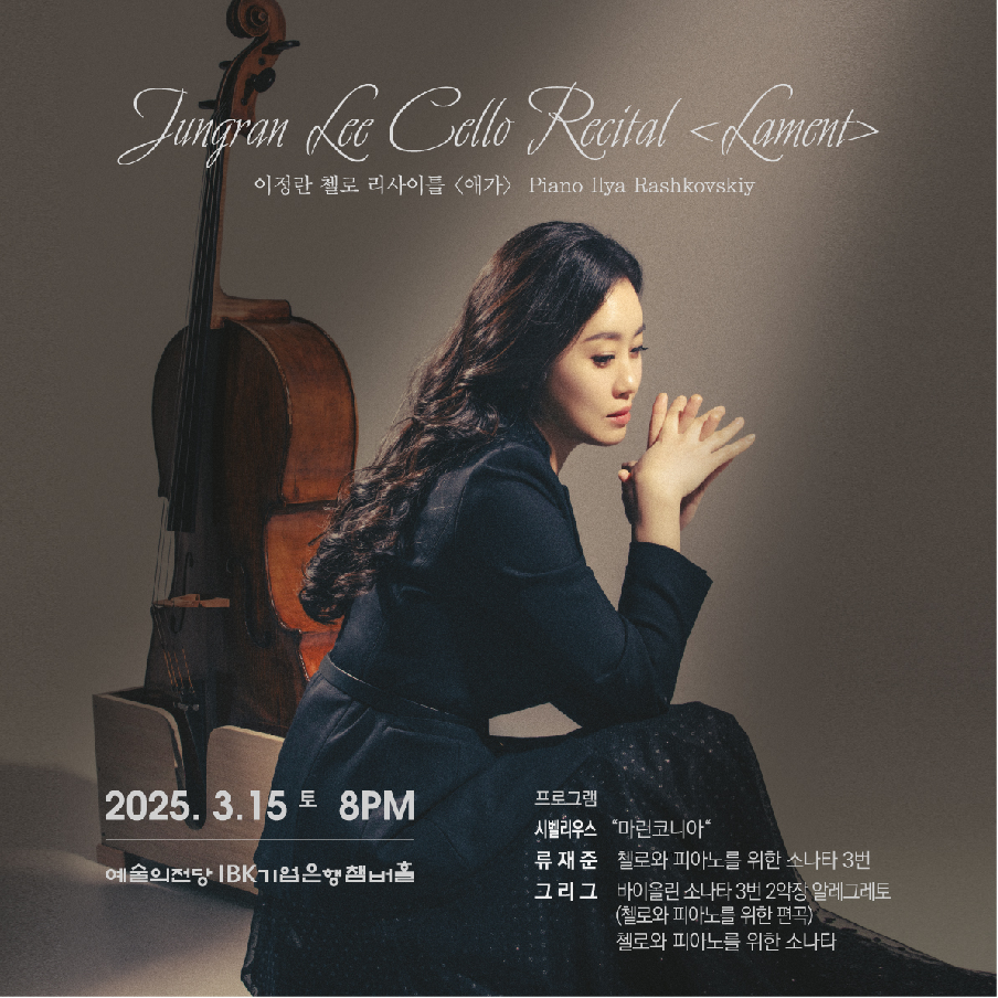 이번 리사이틀을 통해 첼리스트 이정란이 전하는 깊고도 아름다운 비애의 선율이 청중들의 마음을 어루만져 줄 것이다.