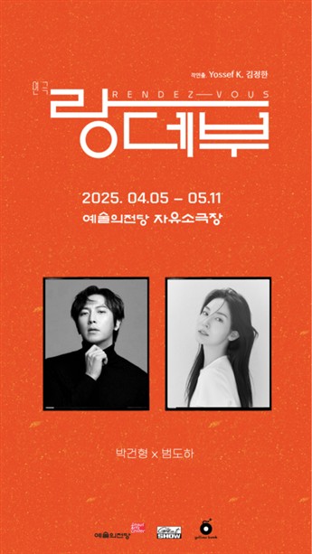 [플레이뉴스 문성식기자] 예술의전당(사장 장형준)은 더 그레이트쇼, 옐로밤과 공동주최로 2025년 4월 5일(토)부터 5월 11일(일)까지 연극 <랑데부>를 자유소극장 무대에 올린다. 지난주 공개된 화려한 캐스팅 라인업에 더해, 이번에는 대한민국을 대표하는 뮤지컬 스타 ‘박건형’과 떠오르는 신예 ‘범도하’의 합류로 작품의 기대감을 한층 더 높이고 있다.