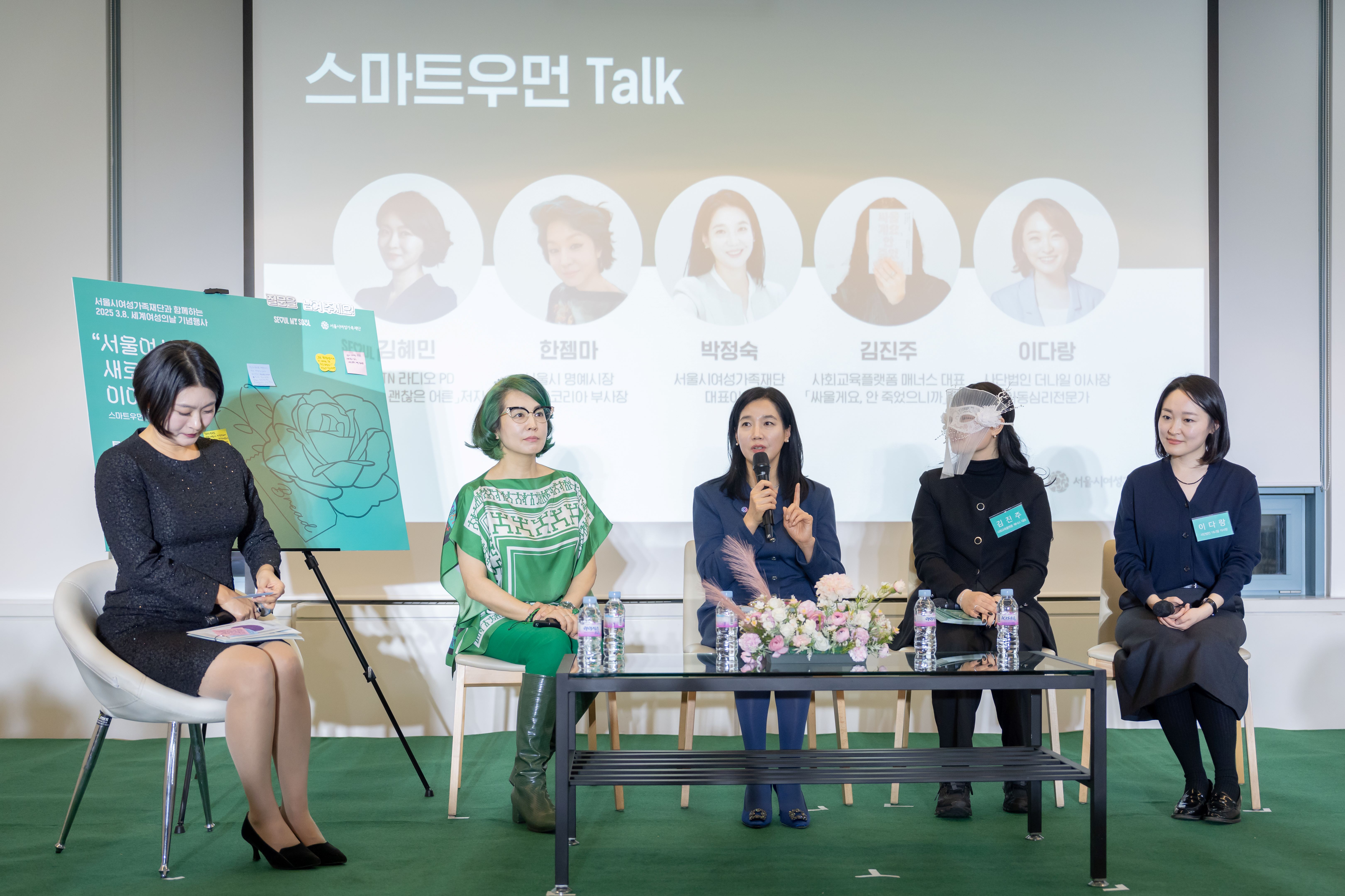 팬텀싱어 시즌1 준우승을 차지한 실력파 팝페라팀 ‘듀에토’의 축하 공연으로 시작해 박정숙 서울시여성가족재단 대표이사와 한젬마 서울시 명예시장 등이 패널로 참여해 ‘서울여성의 새로운 길을 이야기하다’를 주제로 토크를 진행했다.