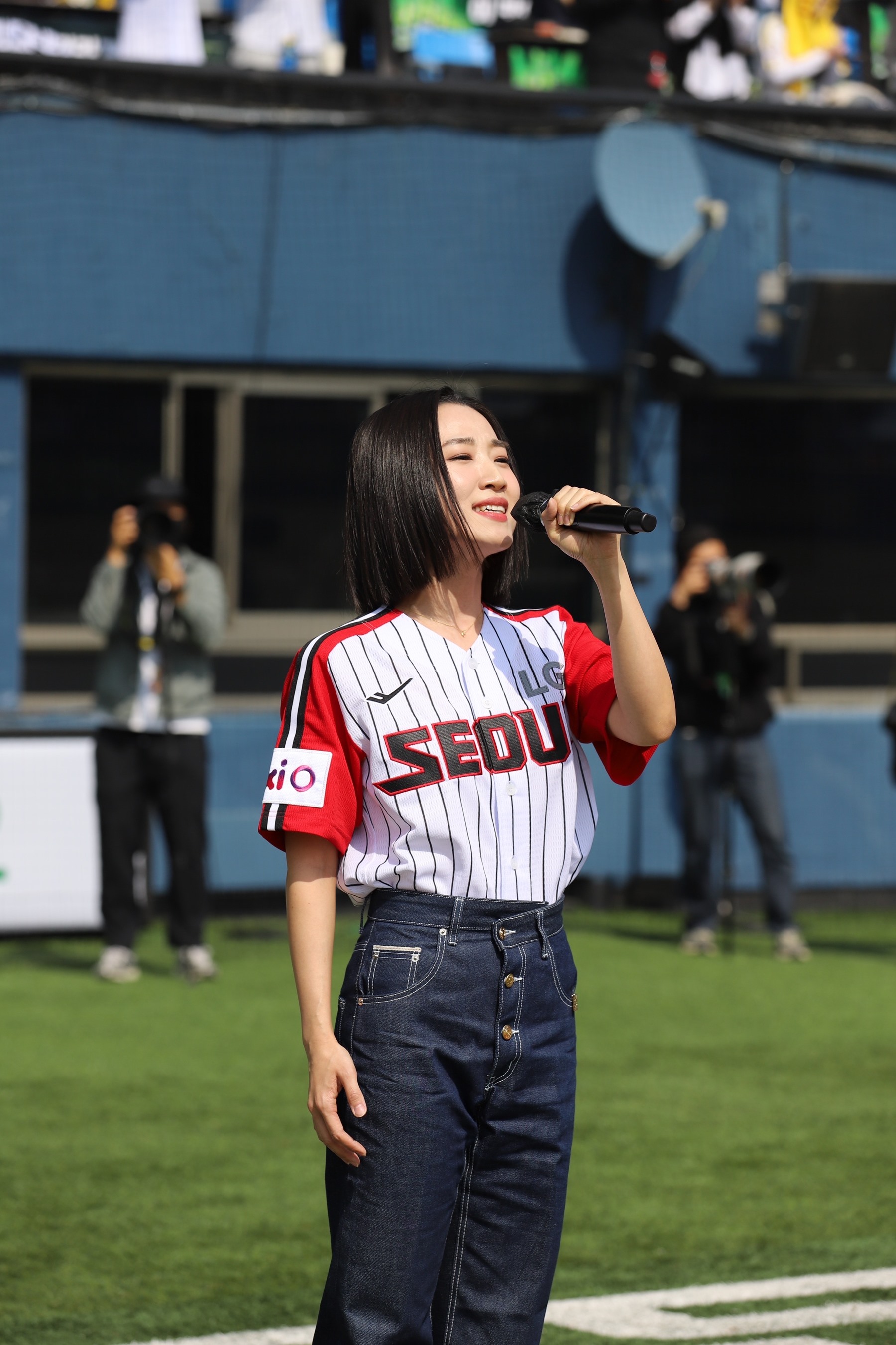 무엇보다 뮤지컬 명배우답게 쭉 뻗어나가는 음색에 파워풀한 창법으로 잠실구장 곳곳에 애국가를 진하게 퍼뜨리는 진풍경을 연출해 이목을 집중시켰다.