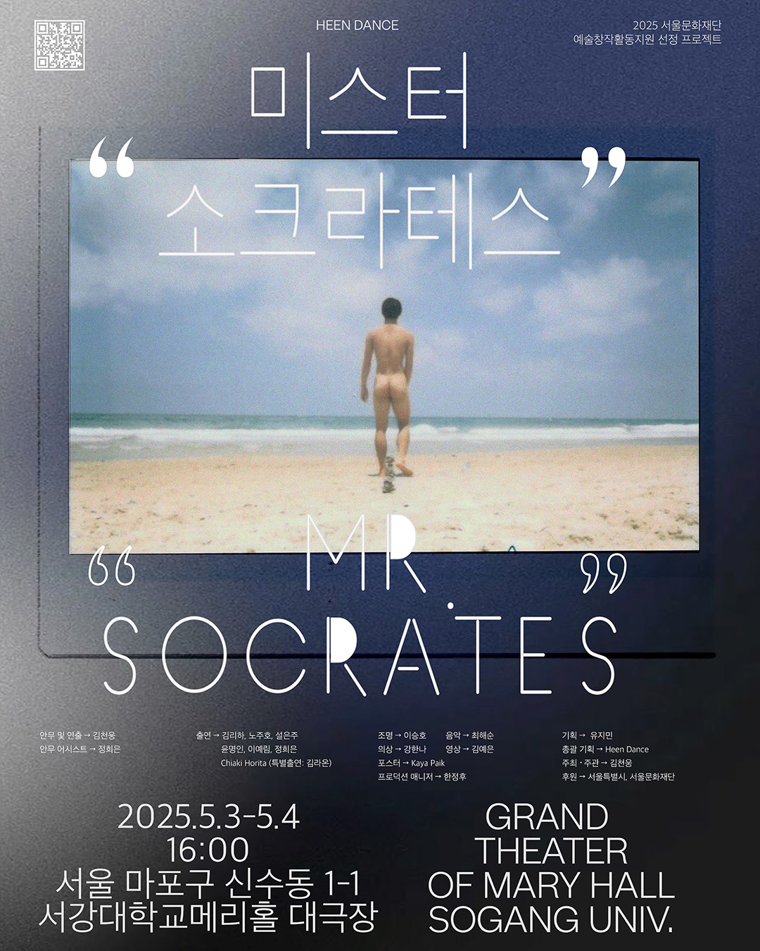 [플레이뉴스 문성식기자] 인간의 본성과 삶, 그리고 죽음에 대한 깊은 성찰을 담은 공연 ‘미스터 소크라테스’가 2025년 5월 3일과 4일, 서강대 메리홀 대극장에서 총 2회에 걸쳐 관객과 만난다.