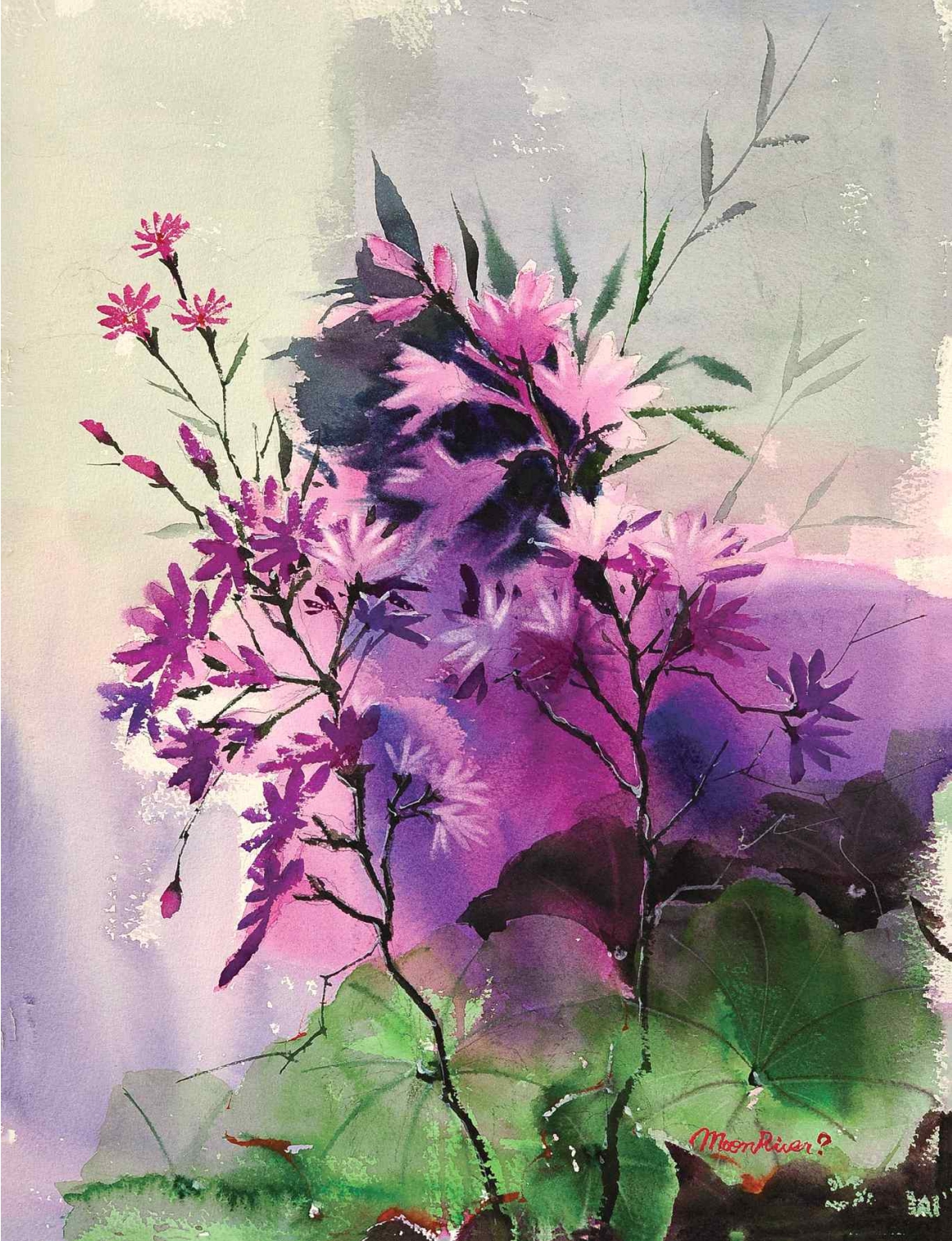 화폭에 담아낸 조형미는 물과 안료의 속성을 작가만의 방식으로 활용하는 과정에서 비롯된 것이다. 이월희 작가가 수묵화를 배운 경험이 있다는 점은 작가의 작품 세계를 이해하는 중요한 단서가 된다.