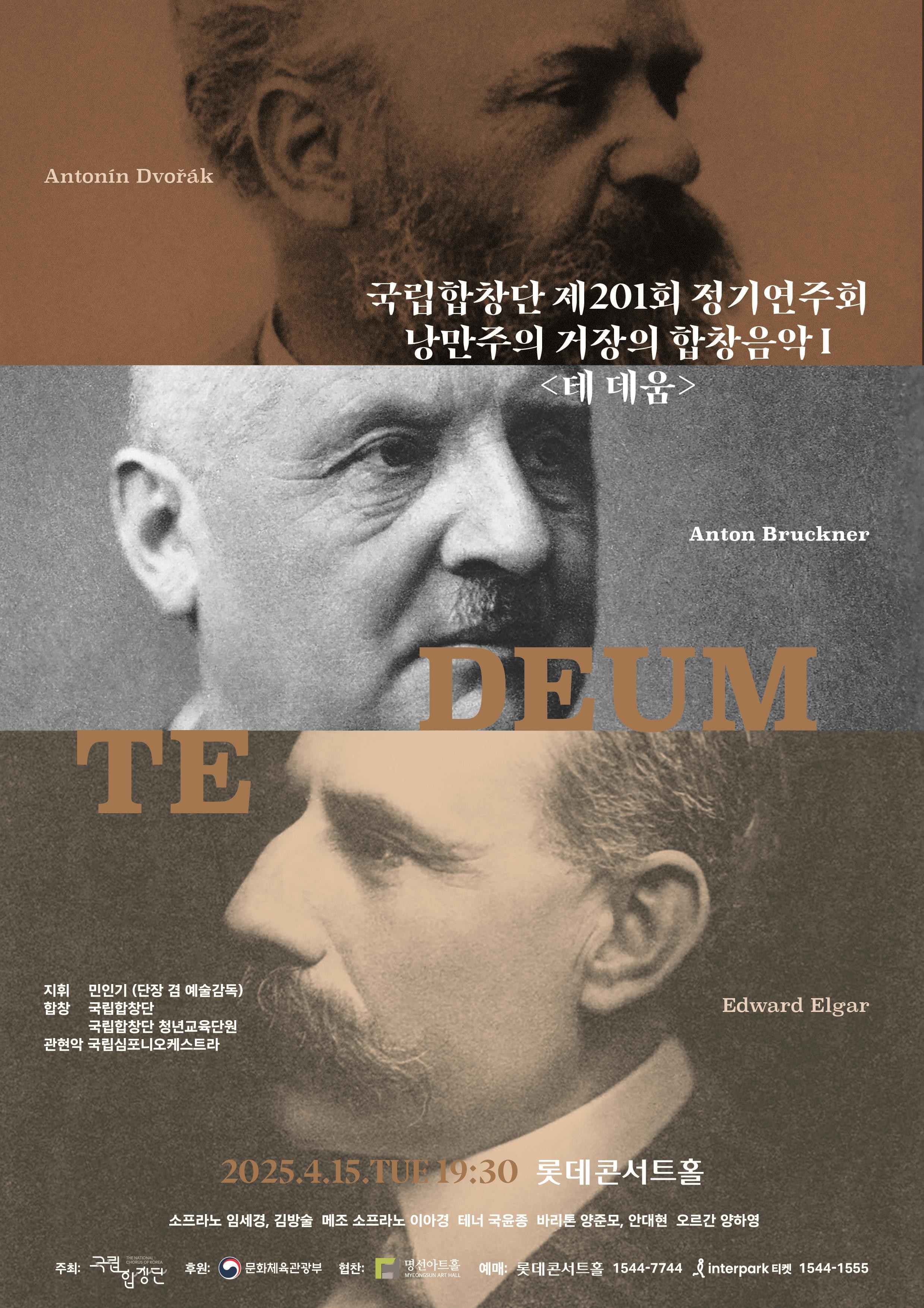 2025년, 국립합창단이 선보이는 낭만주의 명작의 향연제201회 정기연주회세 작곡가의 거대한 음악적 세계, 한 자리에서 만나다낭만주의 거장의 합창음악 그 첫 번째 시리즈,‘테 데움’