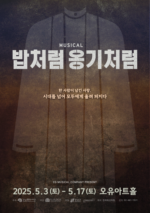 [플레이뉴스 문성식기자] 김수환 추기경의 삶과 정신을 조명하는 창작 뮤지컬 '밥처럼 옹기처럼'이 오는 2025년 5월 3일부터 17일까지 오유아트홀에서 관객들을 만난다.