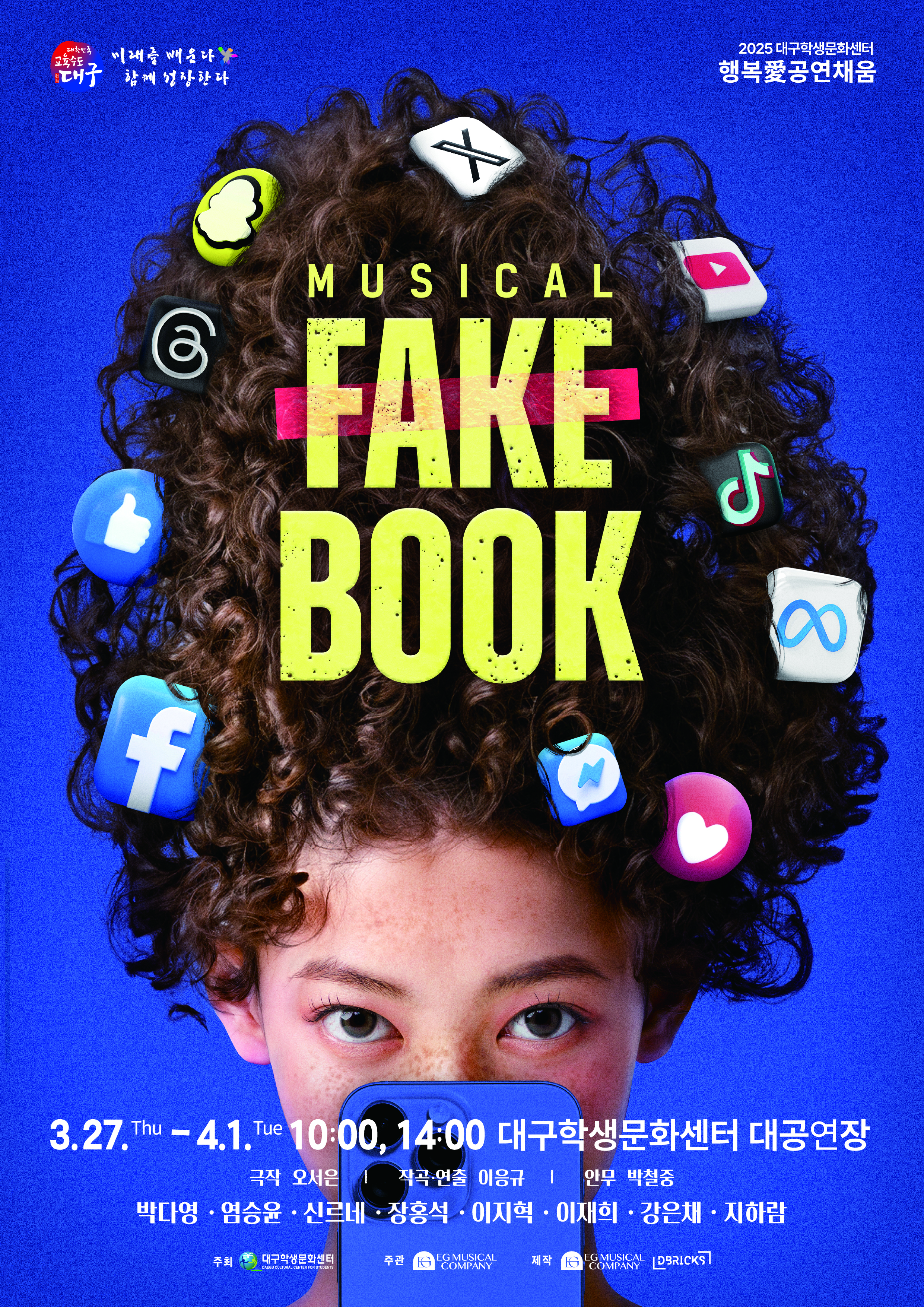 [플레이뉴스 문성식기자] 2019년 초연 이후 꾸준하게 사랑받아 온 EG뮤지컬컴퍼니의 창작 뮤지컬 '페이크북'이 3월 27일부터 4월 1일까지 대구학생문화센터 대공연장에서 성황리에 마무리됐다.
