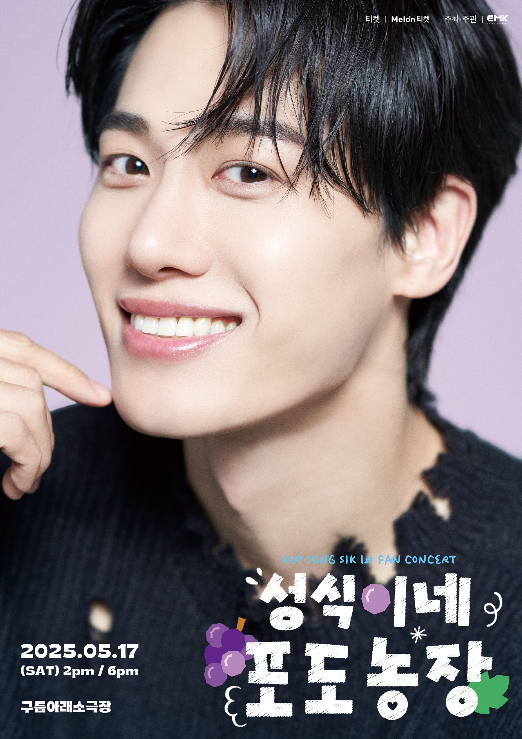 김성식은 오는 5월 17일 서울 구름아래소극장에서 ‘2025 김성식 첫번째 팬콘서트 성식이네 포도농장‘ 타이틀로 오후 2시와 6시 총 2회에 걸쳐 팬들과 만난다.