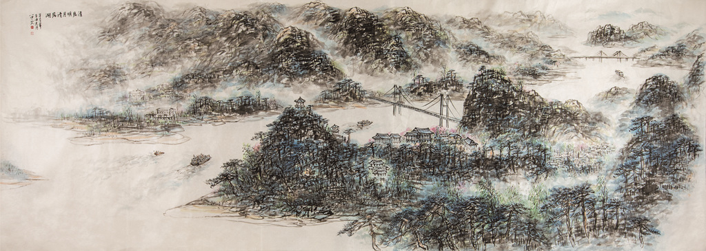 실제 풍경을 수많은 선으로 중심을 잡고 형성된 면에는 먹의 특성을 살린 번짐의 효과를 내어 꿈속에서 만난 듯 황홀하게 만들었다.