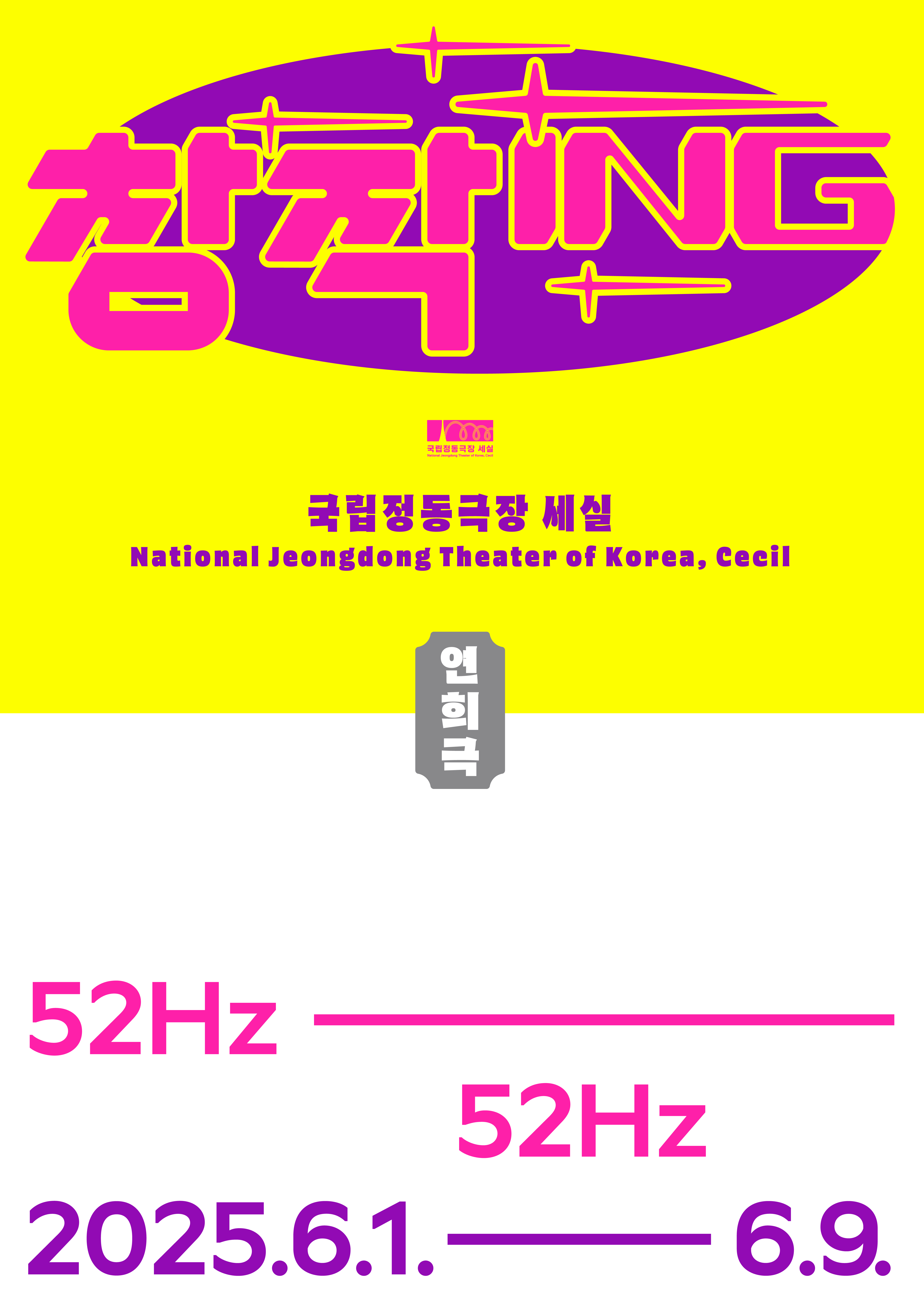 창작ing 두 번째 작품, 연희극 '52Hz'는 6월 1일(일)부터 6월 9일(월)까지 국립정동극장 세실에서 공연된다. 티켓 가격은 전석 2만 원이다. (문의 02-742-1500)