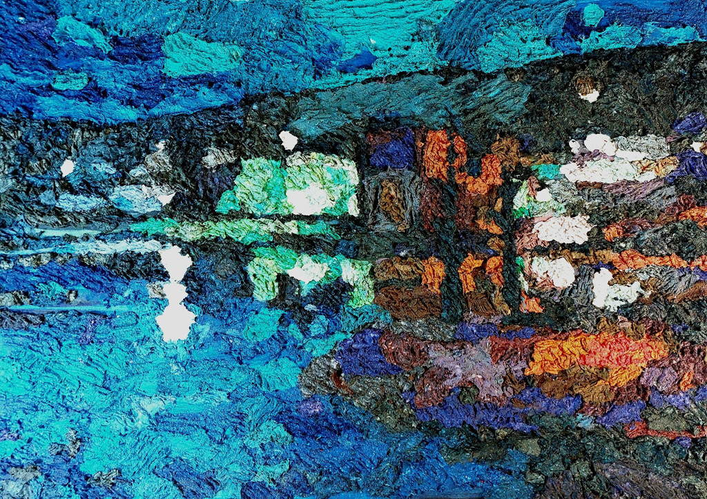 온화한 감성의 풍경화로 개인전을 실시 중인 김병길 작가는 "현장의 느낌을 중요시 하지만 자연을 재현하지는 않았다. 평면 캔버스에 양감과 질감을 주고자 지점토 임파스토 아크릴화 작업을 주로 했다.