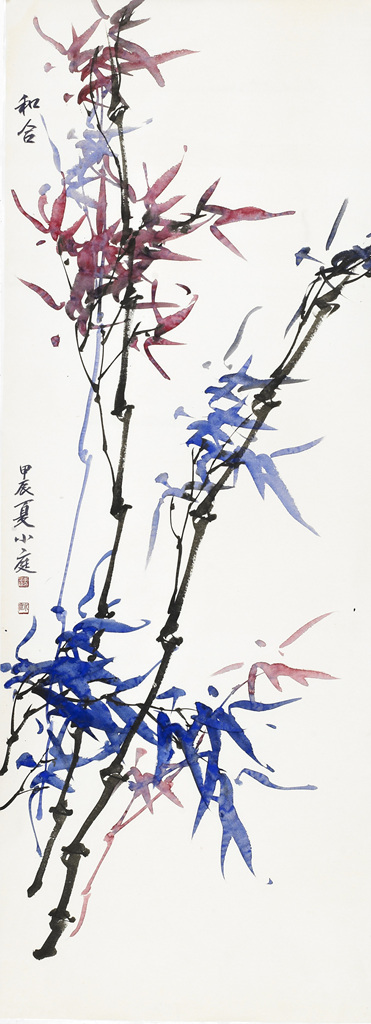 작가는 붉은색과 푸른색의 색채 대비와 조화를 통해 ‘화합’의 의미를 시각적으로 구현한다.