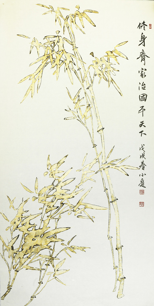 두 번째, ‘경계’ 시리즈는 무한경쟁 사회에서 쉽게 간과될 수 있는 인간의 과욕을 경계하는 메시지를 담은 작품이다. 일필로 친 금니 대나무에 먹을 입히는 과정을 통해, 찬란하던 금빛이 점차 흐려지는 변화를 시각화함으로써 ‘경계’의 개념을 은유적으로 드러낸다.
