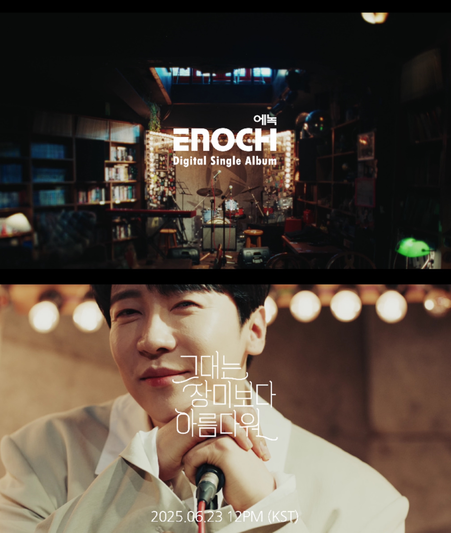 음원 발표에 앞서 지난 21일 공개된 티저 영상에는 라이브 무대를 내려다보며 음악을 듣을 수 있는 이색적인 곳에서 스탠딩 마이크를 잡은 채 장밋빛 미소를 짓는 에녹의 비주얼이 담겨 있어 ‘그대는 장미보다 아름다워’가 품은 화사한 무드를 제대로 전달하고 있다.