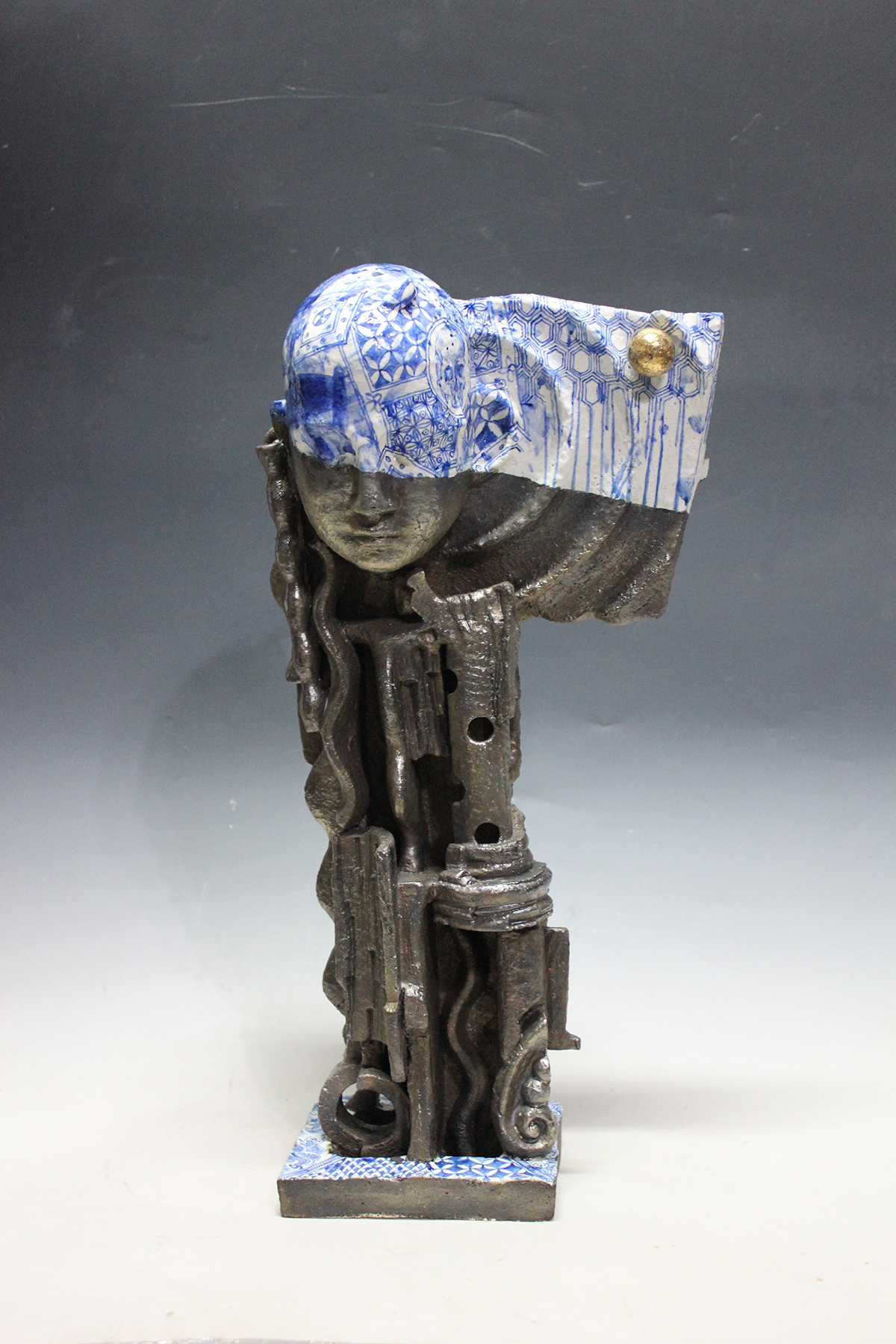 김정범 선생님의 작업은 도자기와 조각을 융합한 독특한 기법으로 형상과 색을 정교하게 다룬다. 일부 두상 이미지는 기계적 역동성과 고대 조각상의 시각적 요소를 결합하여 은유적이고 철학적인 의미를 전달한다.