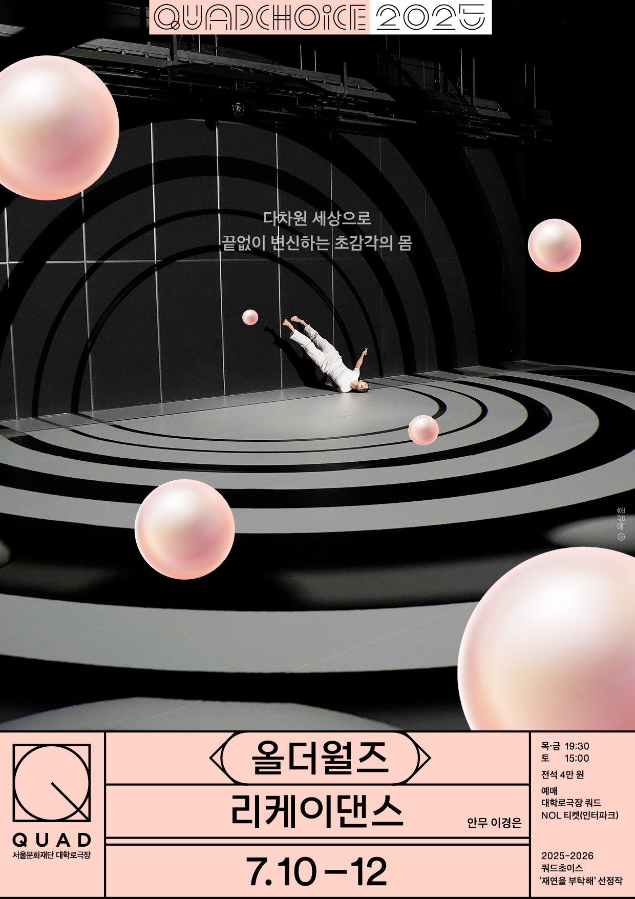 2025-2026 쿼드초이스 '재연을 부탁해' 첫 번째 공연인 리케이댄스의 ‘올더월즈’ 티켓은 대학로극장 쿼드 누리집(www.quad.or.kr)에서 구매할 수 있다. 전석 4만원.