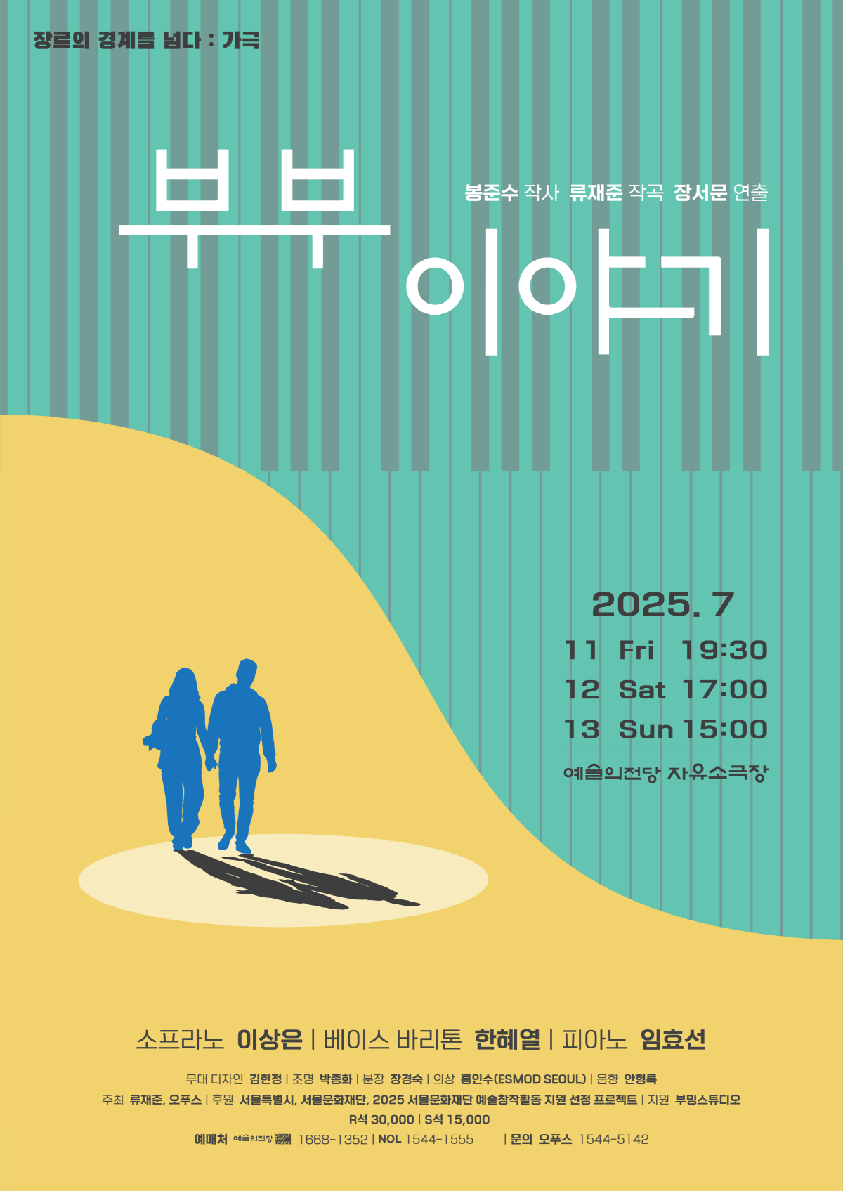 현실 속 부부의 삶을 진솔하면서도 유머러스하게 풀어낸 영문학자 봉준수의 위트있고 따뜻한 가사와 작곡가 류재준의 현대성과 감성을 아우르는 독특하면서도 로맨틱한 선율은 이 작품의 감정선을 섬세하게 구축했다. 또한 장서문이 연출을 맡아 섬세하고 따뜻한 무대를 만들어간다.