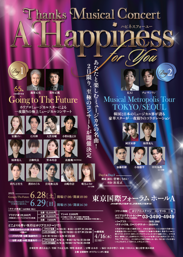 지난 6월 29일 일본 도쿄에서 열린 "Thanks Musical Concert 'A Happiness for You ハピネスフォーユー' Musical Metropolis Tour TOKYO/SEOUL"에 출연해 5000여 명의 관객과 만났다.