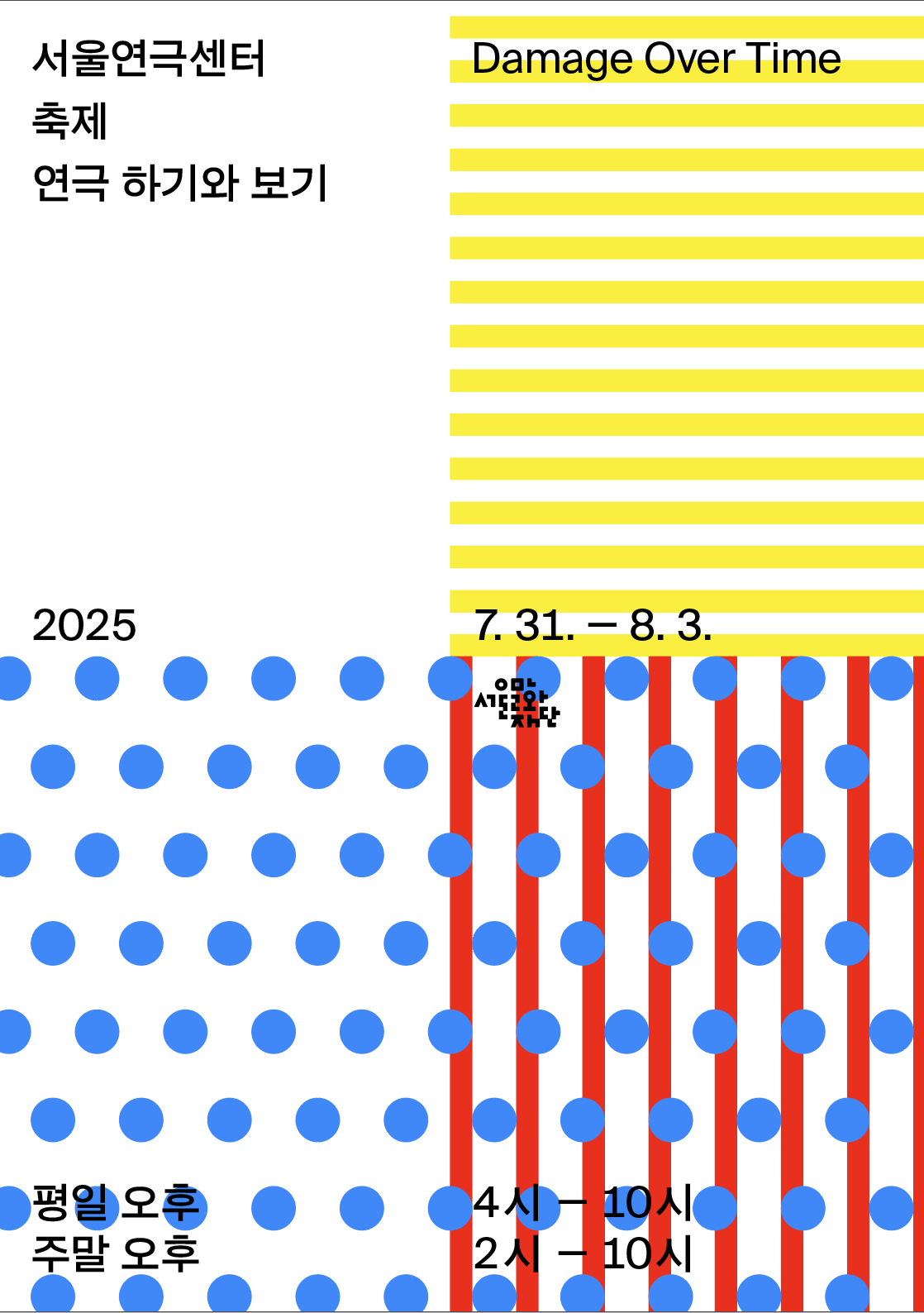 올해 축제는 ‘시간에 균열을 내는(damage over time)’을 주제로 서울연극센터라는 물리적 공간을 넘어 시간이라는 또 하나의 차원에 주목했다.