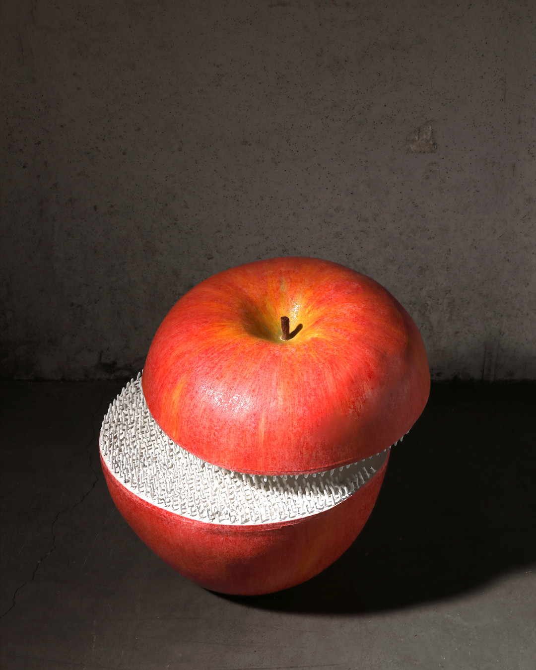 그는 개인의 고통과 욕망 그리고 사회의 아픔과 욕망을 ‘사과’에 투사하며, 두 주체의 모호한 감정적 경계를 시각적으로 표현한다.