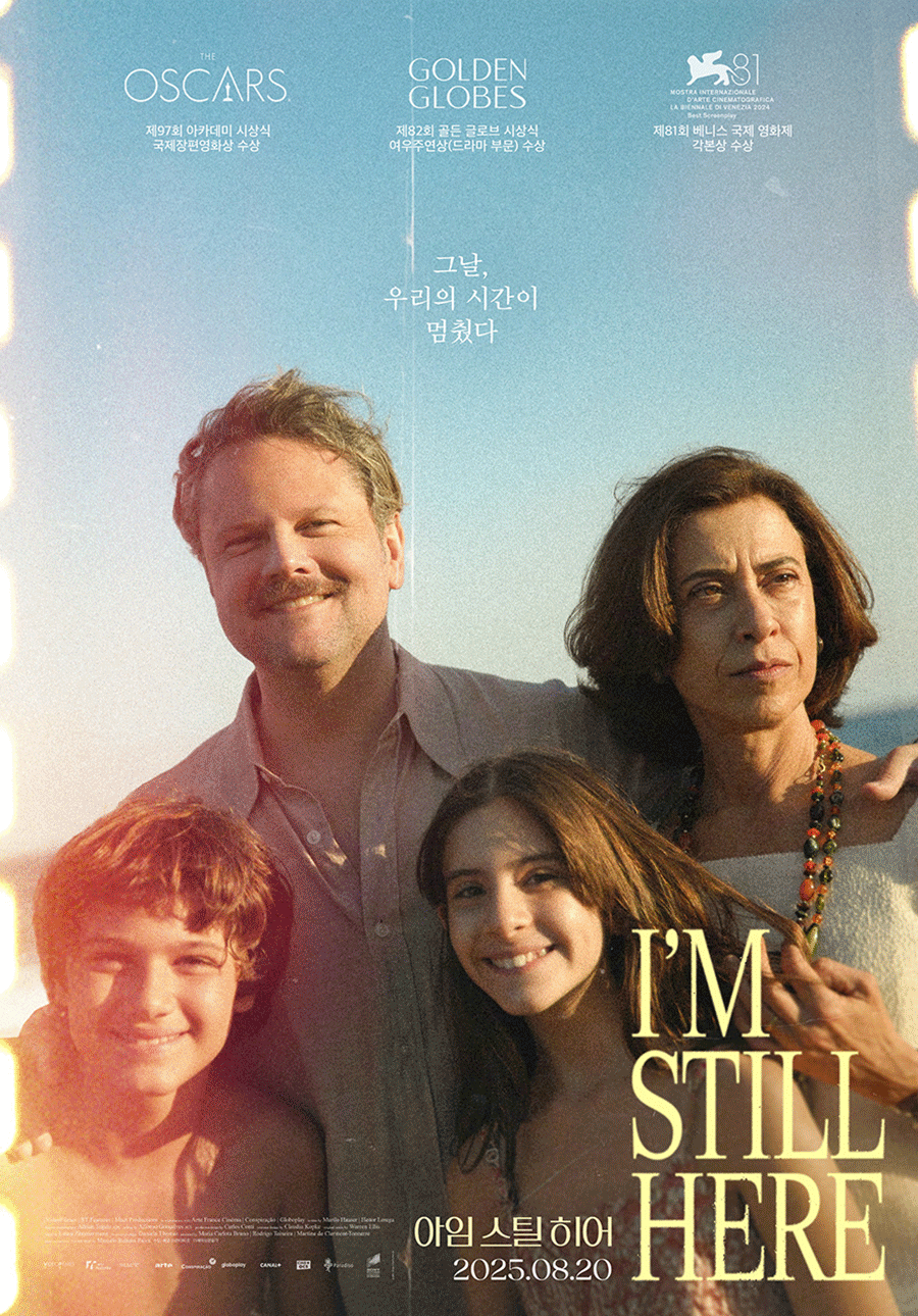 '아임 스틸 히어'는 행복한 가족을 산산조각 낸 남편의 강제 실종 후, 진실을 밝히기 위해 일생을 건 여인을 그린 영화. 새로 공개한 메모리 포스터는 영화 속 홈비디오 장면들로 제작됐는데, 월터 살레스 감독은 70년대 브라질을 완벽하게 재연하기 위해 유행했던 슈퍼8필름 카메라로 해당 컷을 촬영했다.