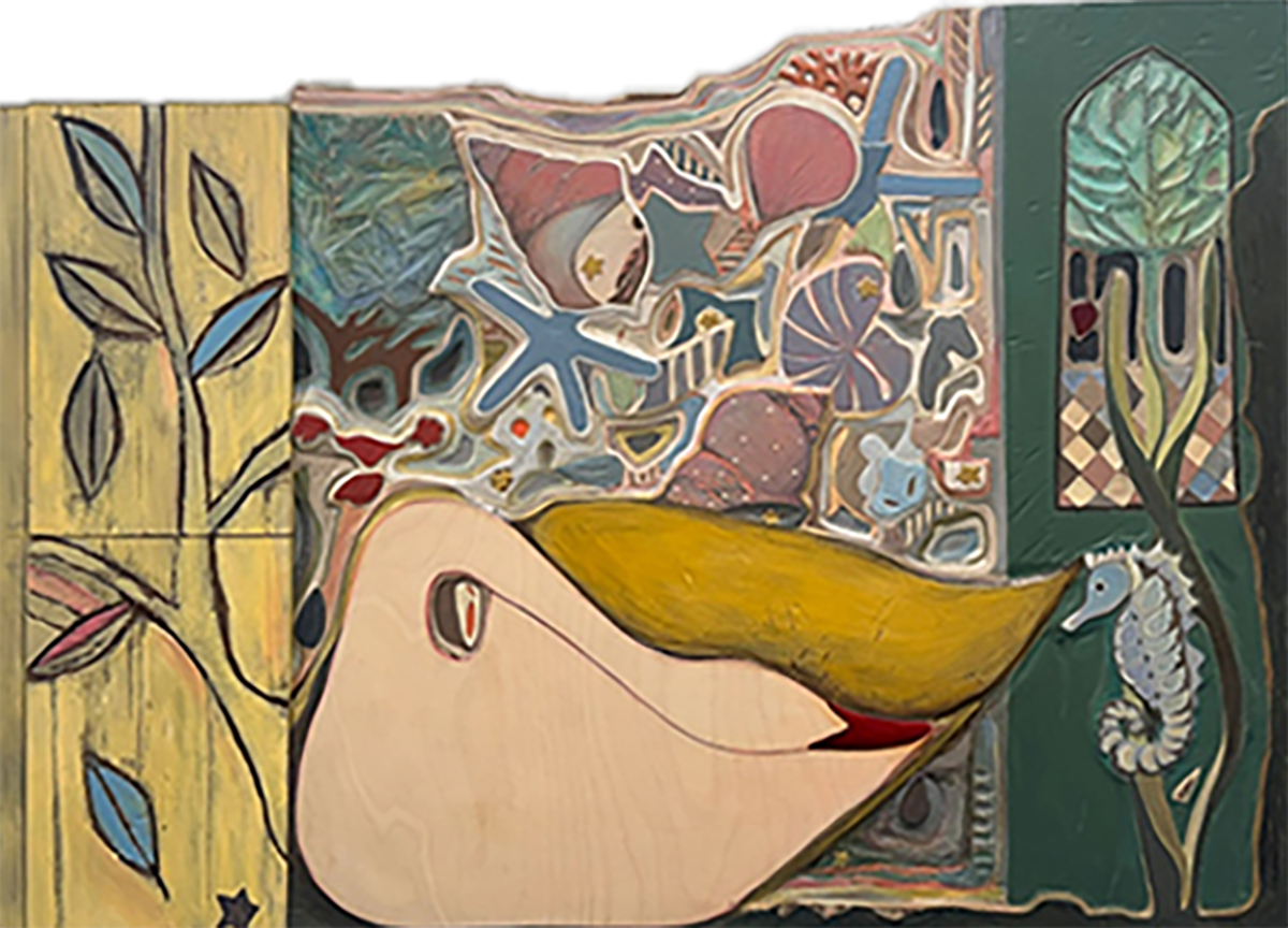 주로 나무로 부조작업을 하는데 조각작품이면서 회화작품처럼 보이는 평면작업이 김성지 작가의 특징이다.
