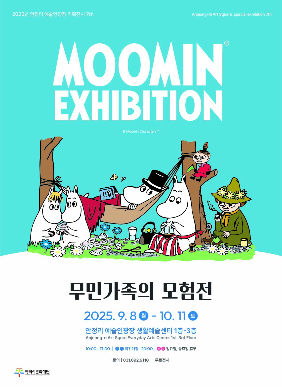 [플레이뉴스 문성식기자] (재)평택시문화재단(대표이사 이상균)은 오는 9월 8일부터 10월 11일까지 안정리 예술인광장에서 기획전시 '무민가족의 모험전'을 개최한다고 밝혔다.
