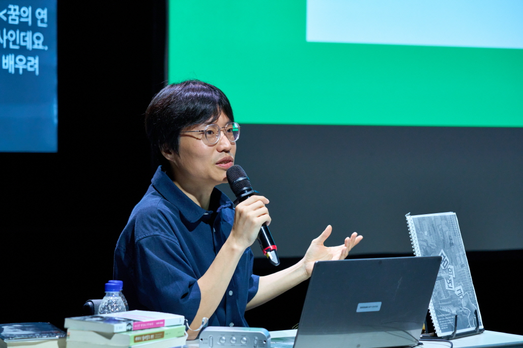 8월 11일 첫 번째 강연은 극단 907(구공칠) 대표이자 2021년 두산연강예술상 수상자인 설유진(극작가∙연출가)이 맡아 ‘정서적 공간’이라는 개념을 중심으로 강연을 펼쳤다.
